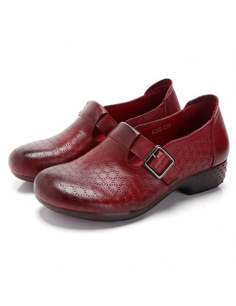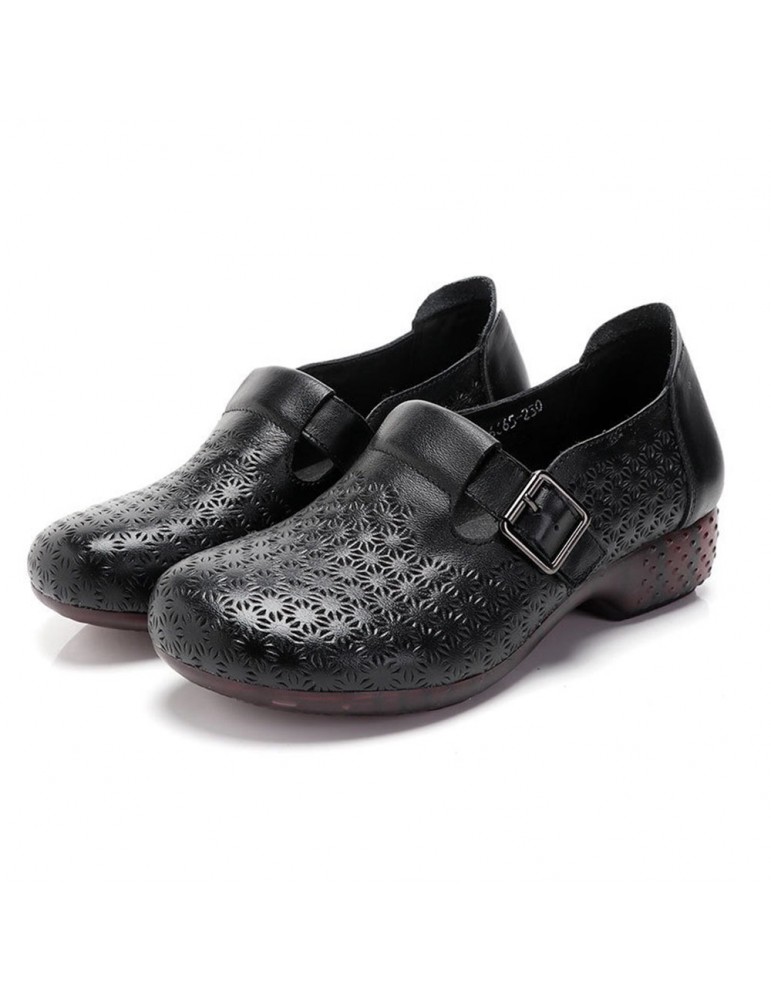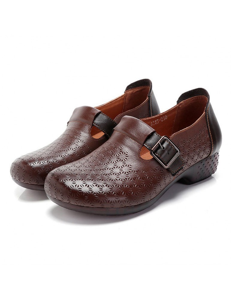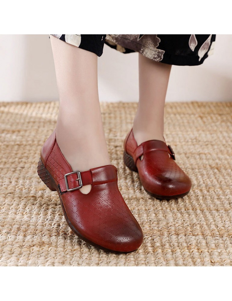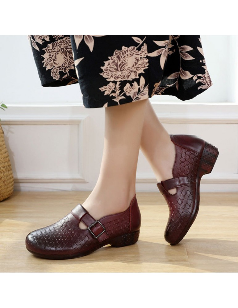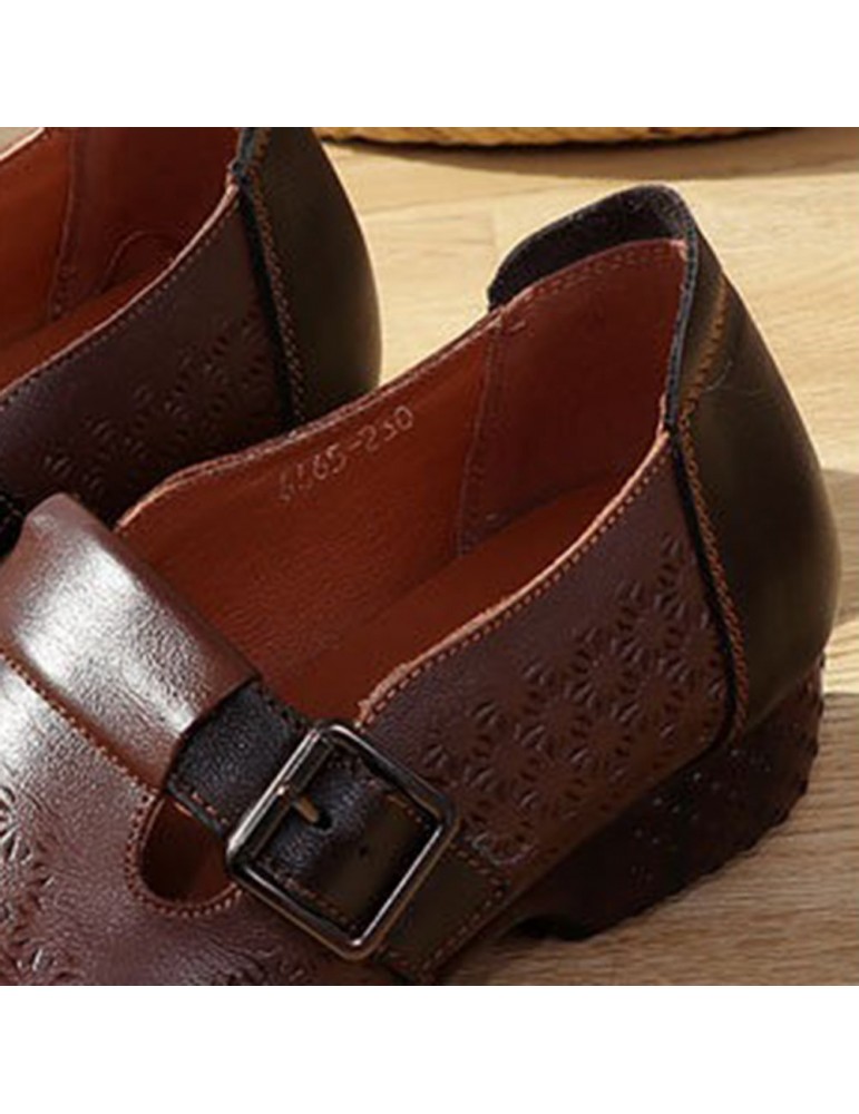 Women Casual Soft Breathable Hollow Buckle Genuine Leather Shoes