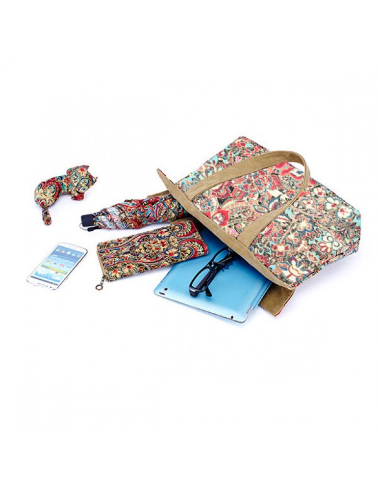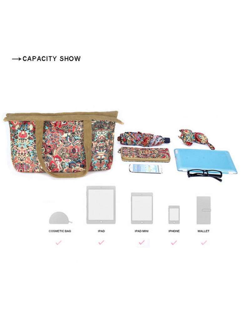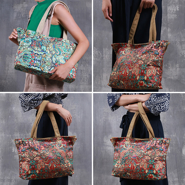 Vintage Print Pattern Shoulder Bag Canvas National Style Travel Handbags For Women