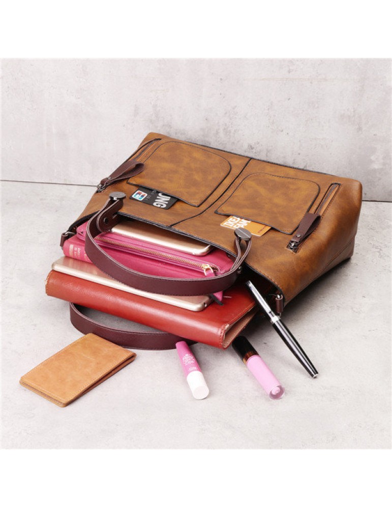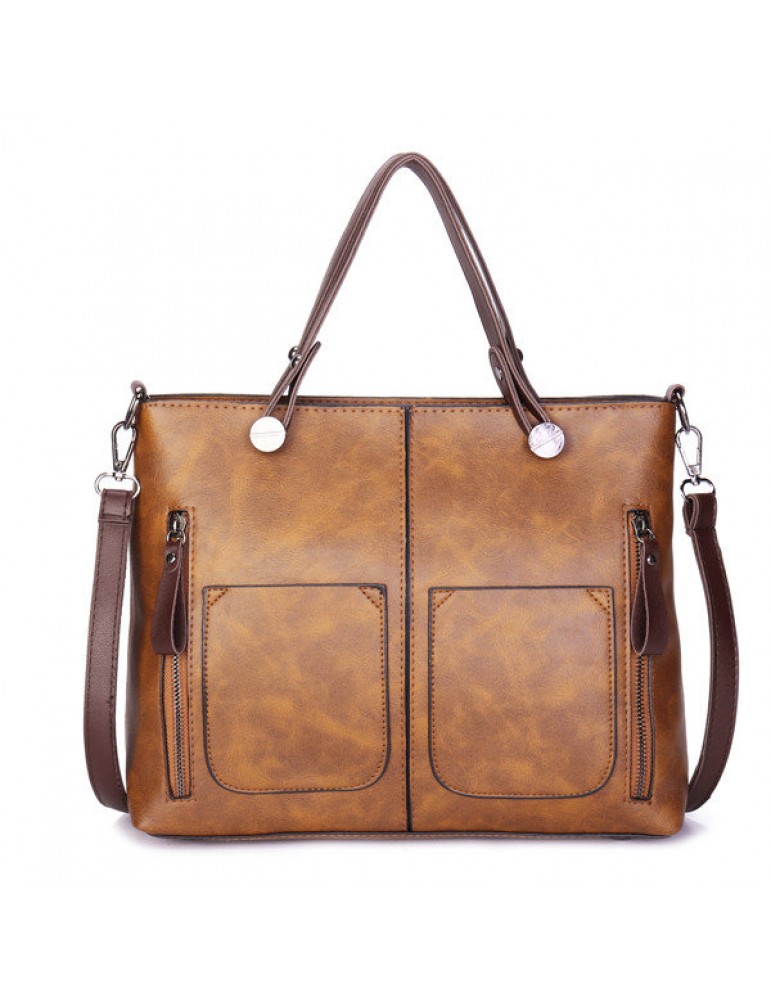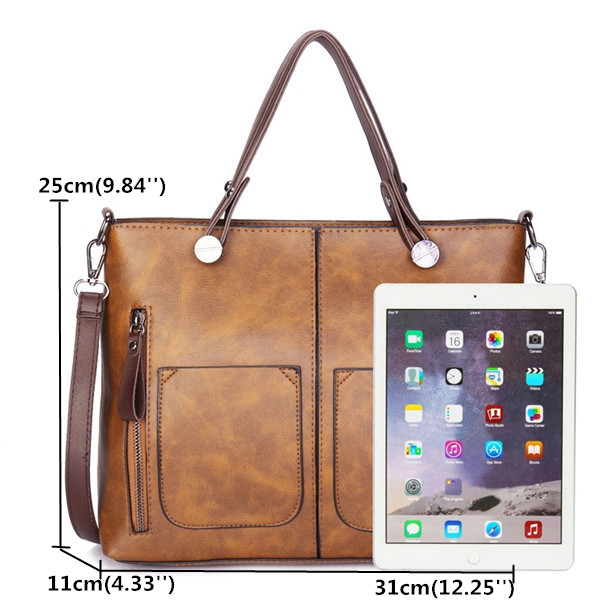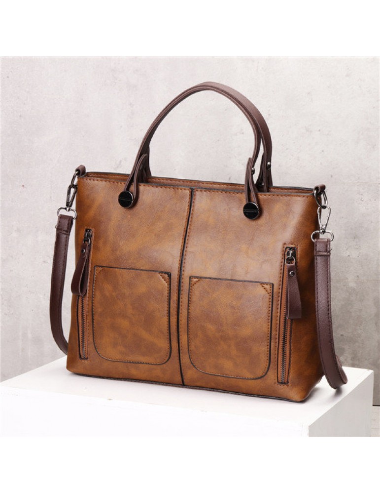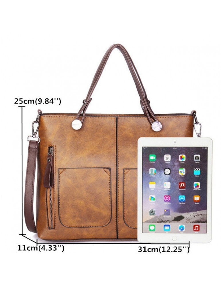 Women Retro Solid Tote Bags Dating Soft Leather Large Capacity Crossbody Bags
