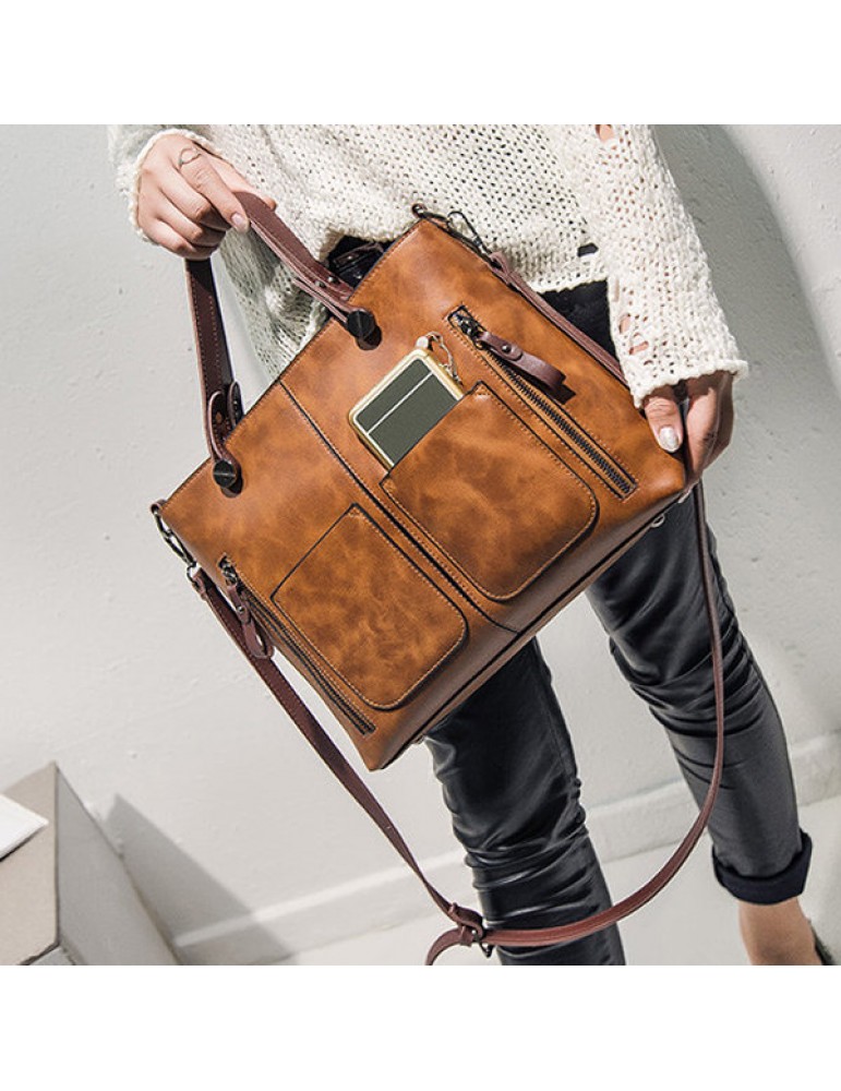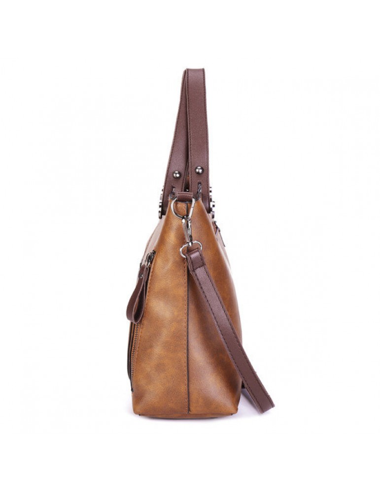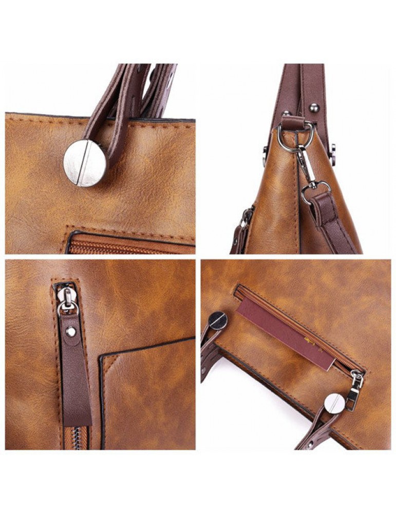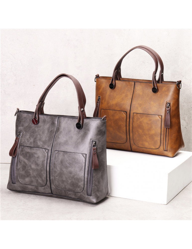 Women Retro Solid Tote Bags Dating Soft Leather Large Capacity Crossbody Bags