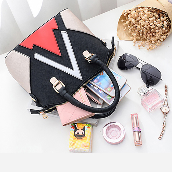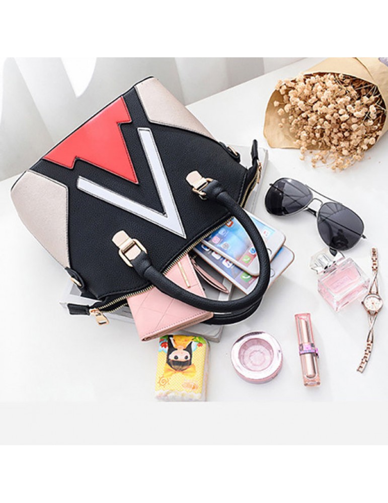 Women Patchwork Handbag PU Leather Crossbody Bag