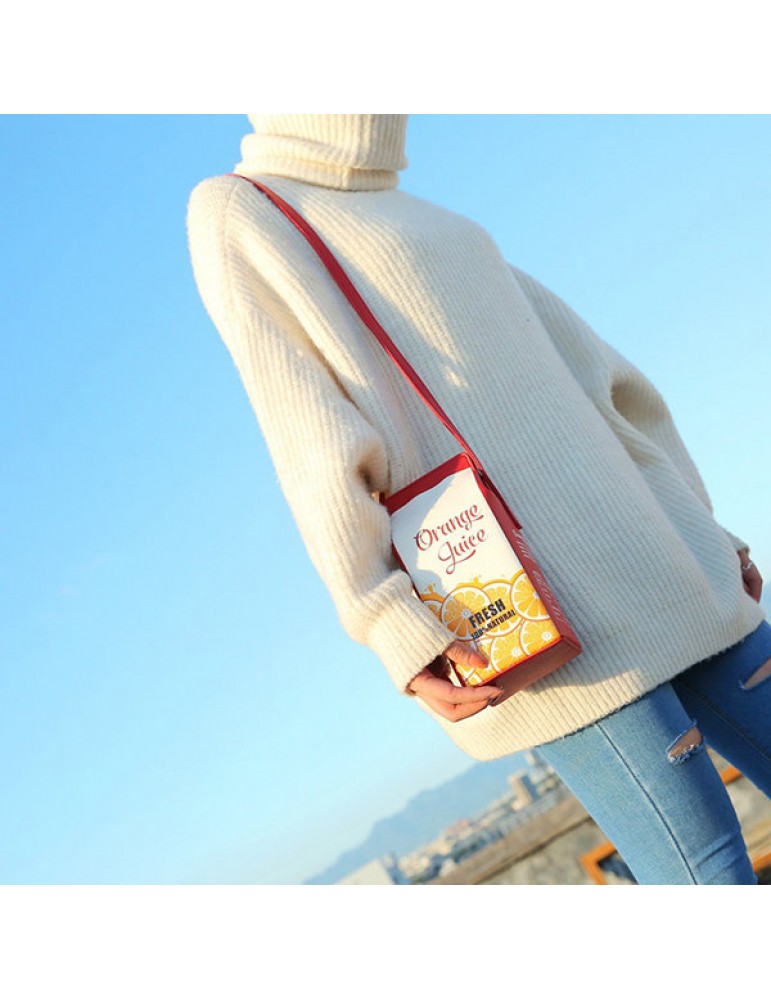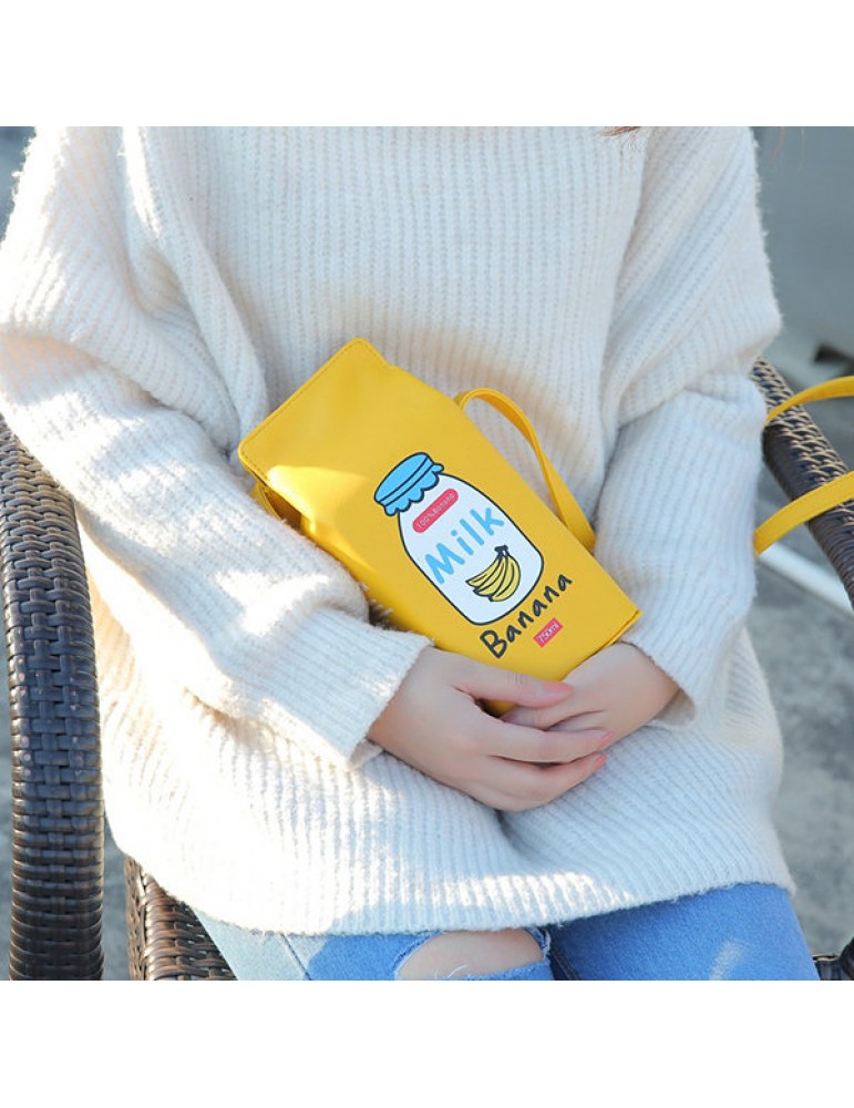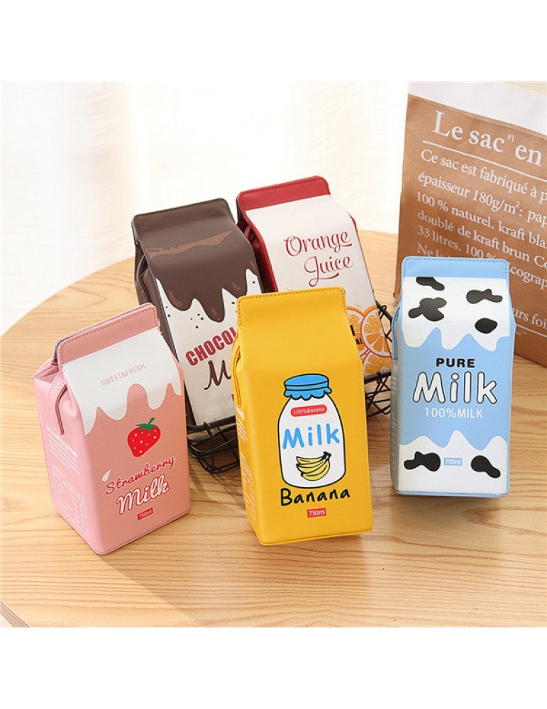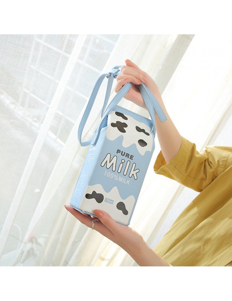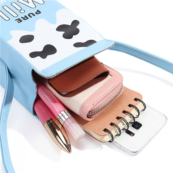 Women PU Leather Cute Milk Box Crossbody Bag Casual Phone Purse