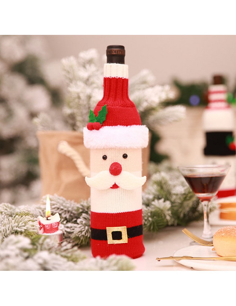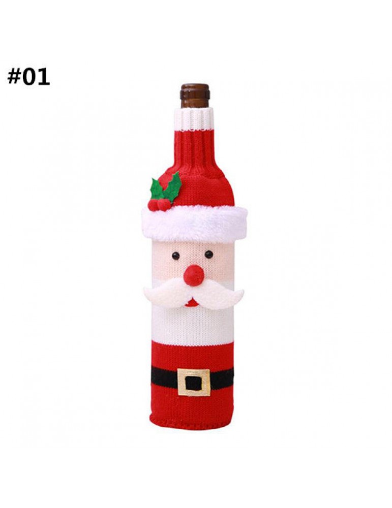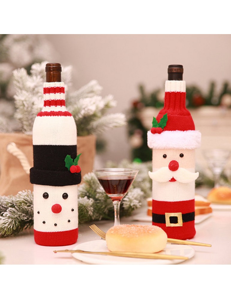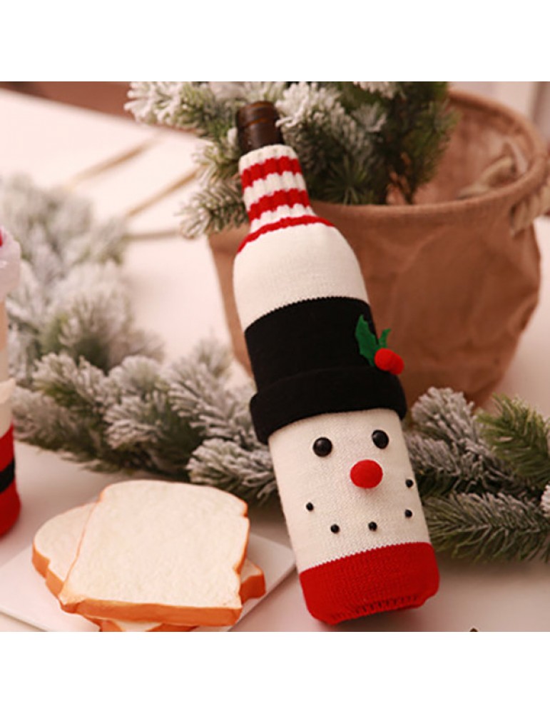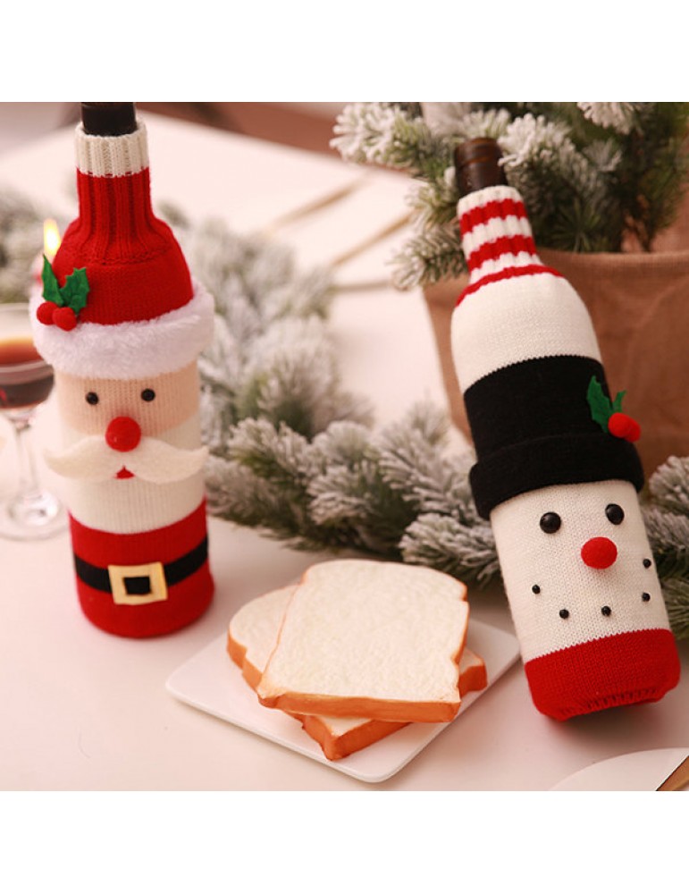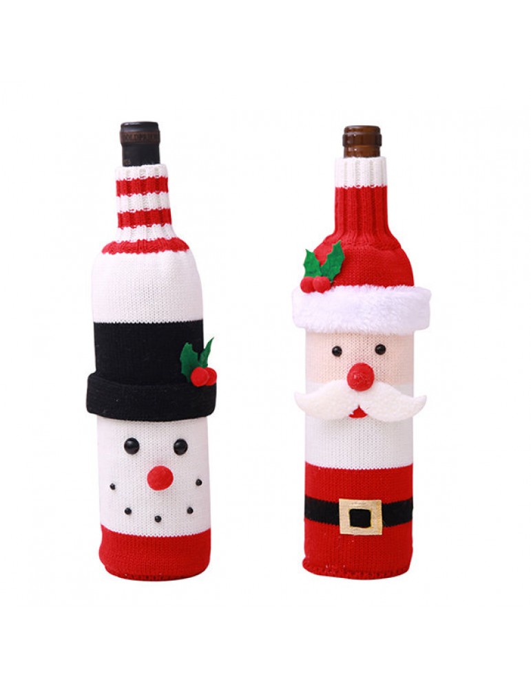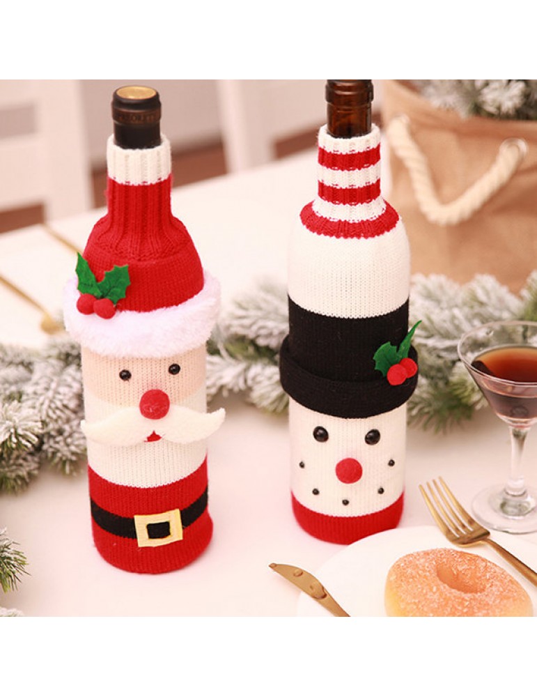 Christmas Santa Claus Knitting Red Wine Bottle Cover For Bar Xmas Snowman Bottle Bag