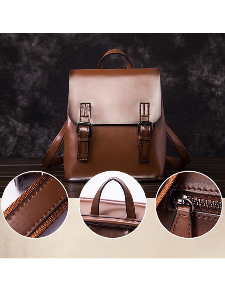 Brenice Leather Backpack College Bags Cow Leather Backpack Vintage Casual Daypack
