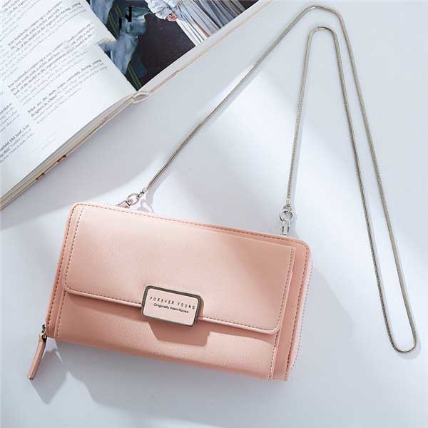 Women Zipper Long Wallets Chain Hasp Crossbody Bags 12 Card Holder Coin Bags 5.5'' Phone Bags