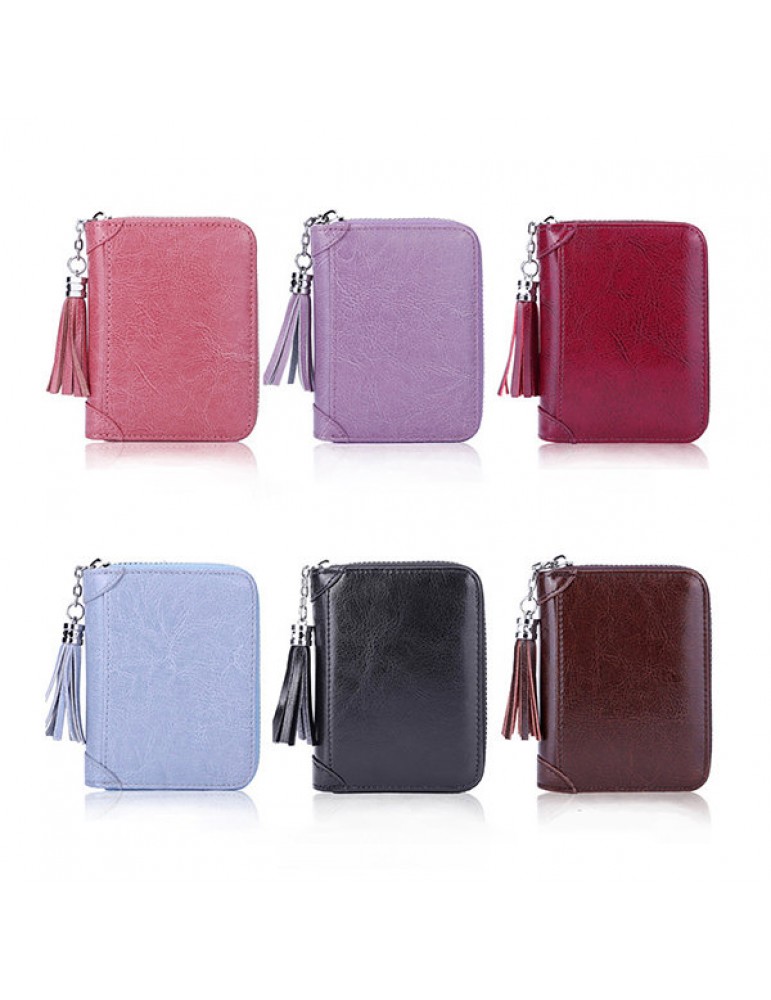 Genuine Leather Tassel Multi-slots Card Holder Purse For Women