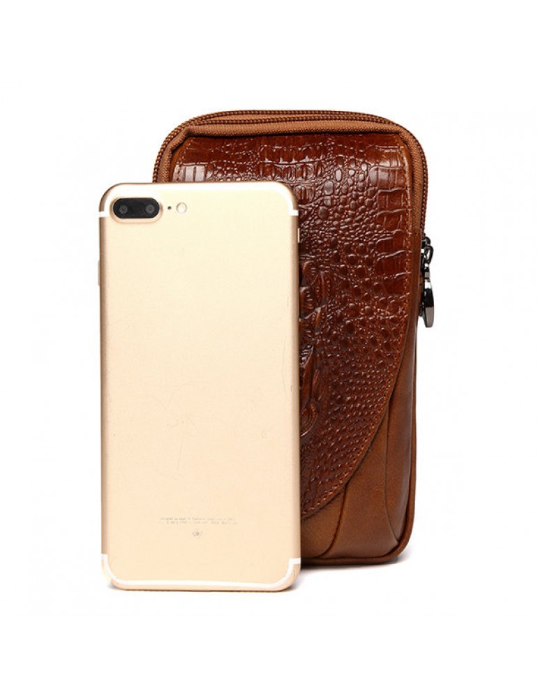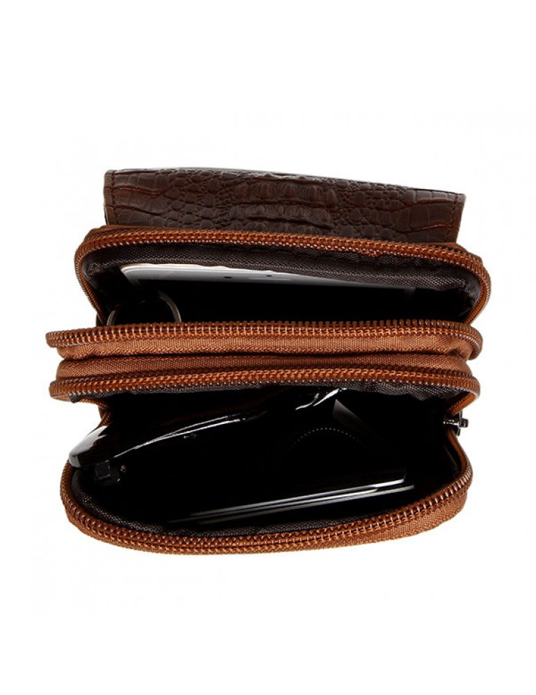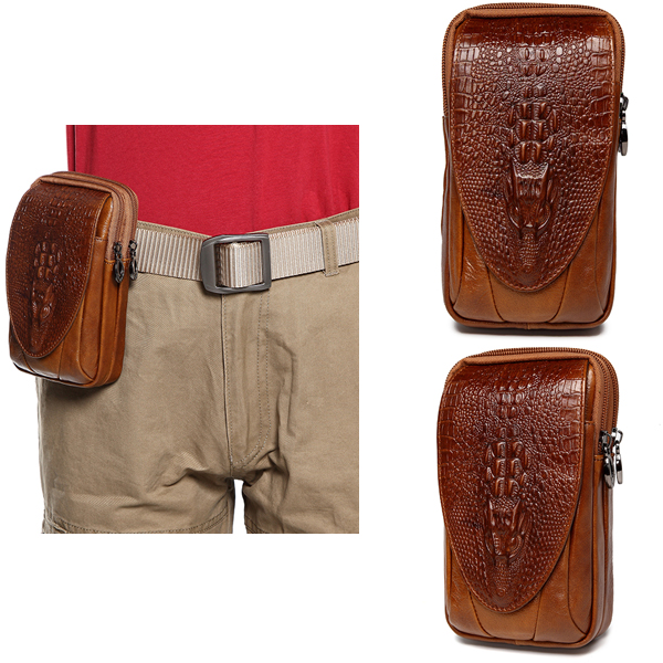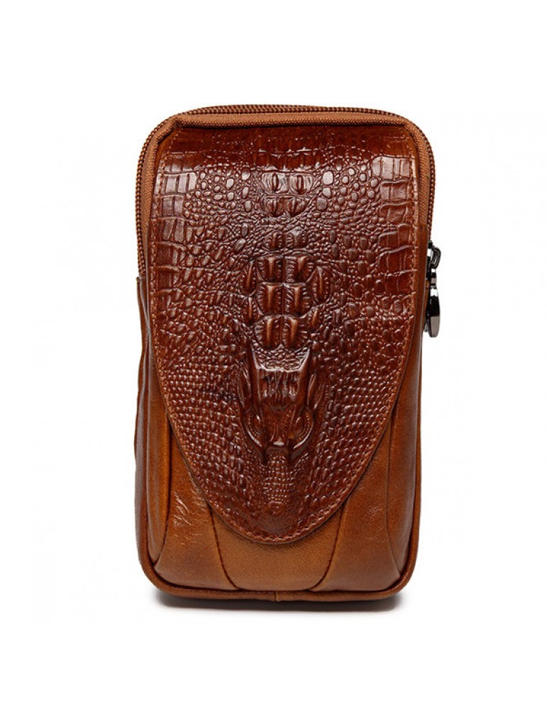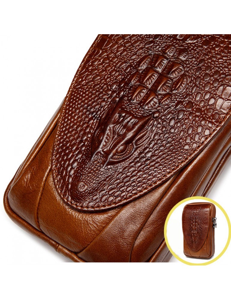 Genuine Leather Waist Bag Crocodile Pattern Crossbody Bag Phone Bag For Men