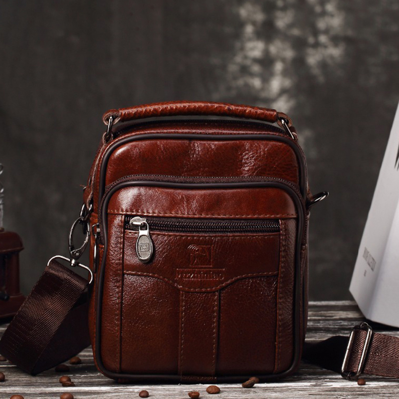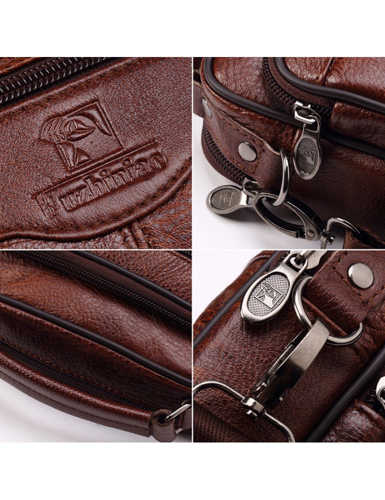 Men Cowhide Messenger Bag Handbag Wasit Bag Small Crossbody Bag