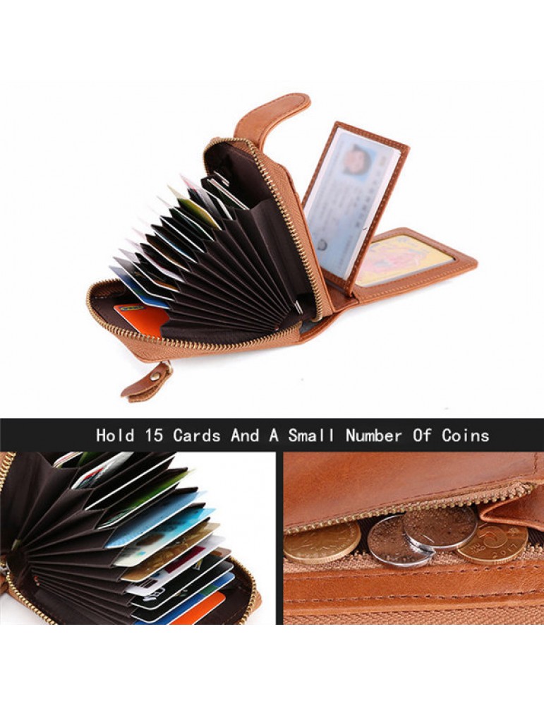 Men Genuine Leather RFID Anti-magnetic Vintage Casual 15 Card Slots Wallet