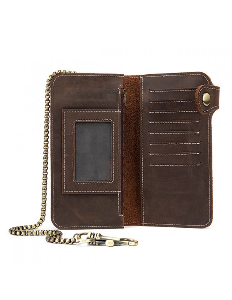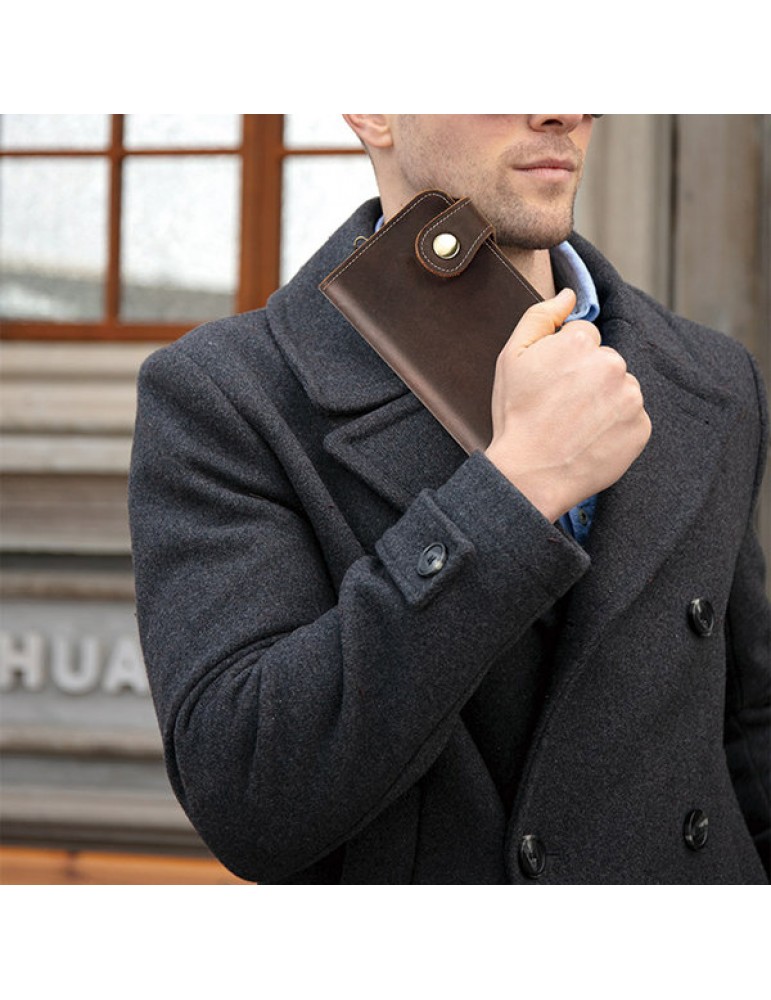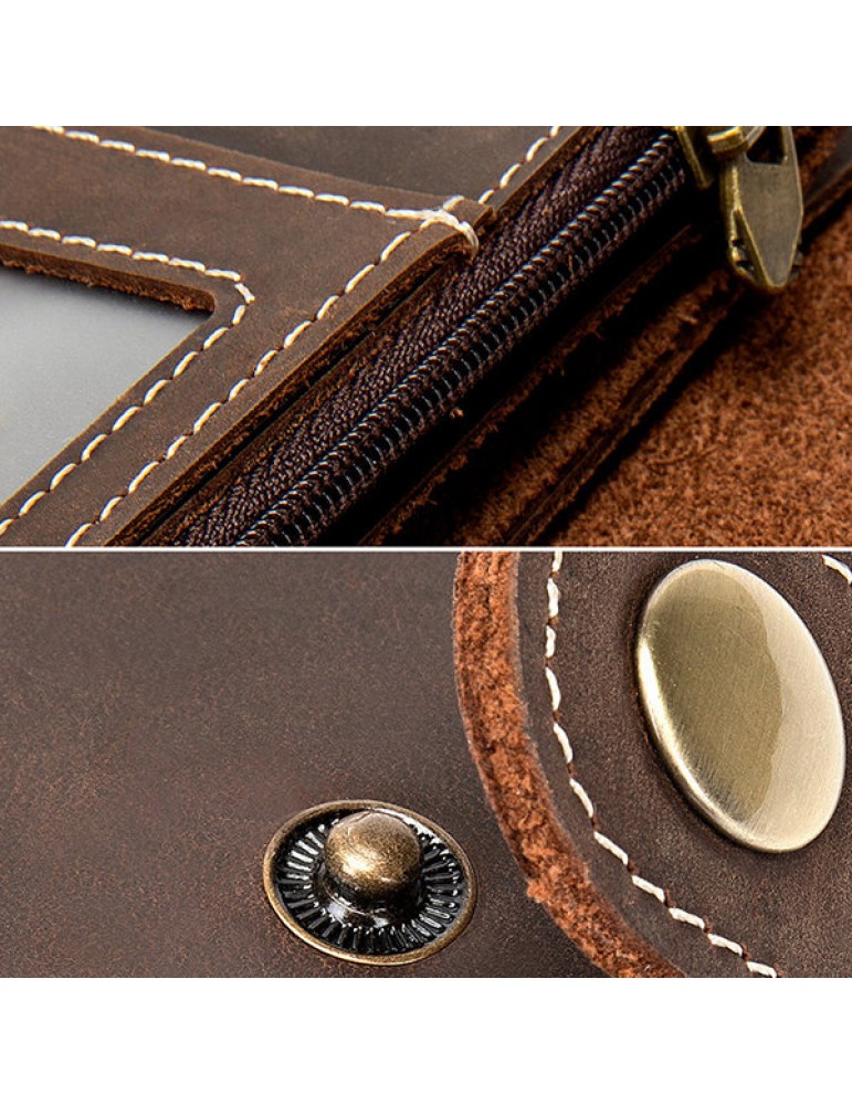 Men Genuine Leather Multi-function Plain Wallet Card Holder Phone Bag