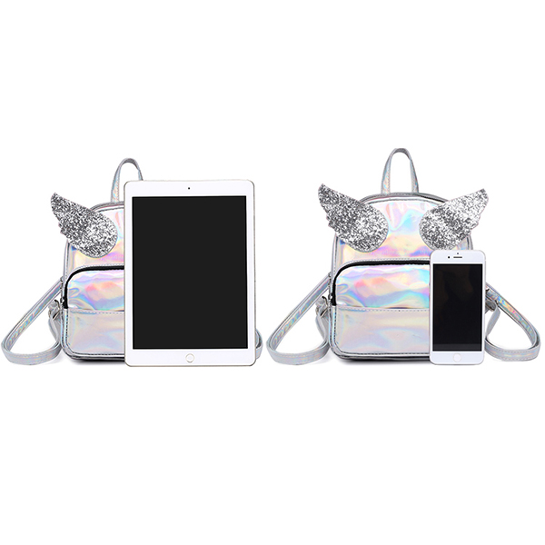 Women Laser Shoulder Bag Sequin Wings Backpack Cute Reflective Bag