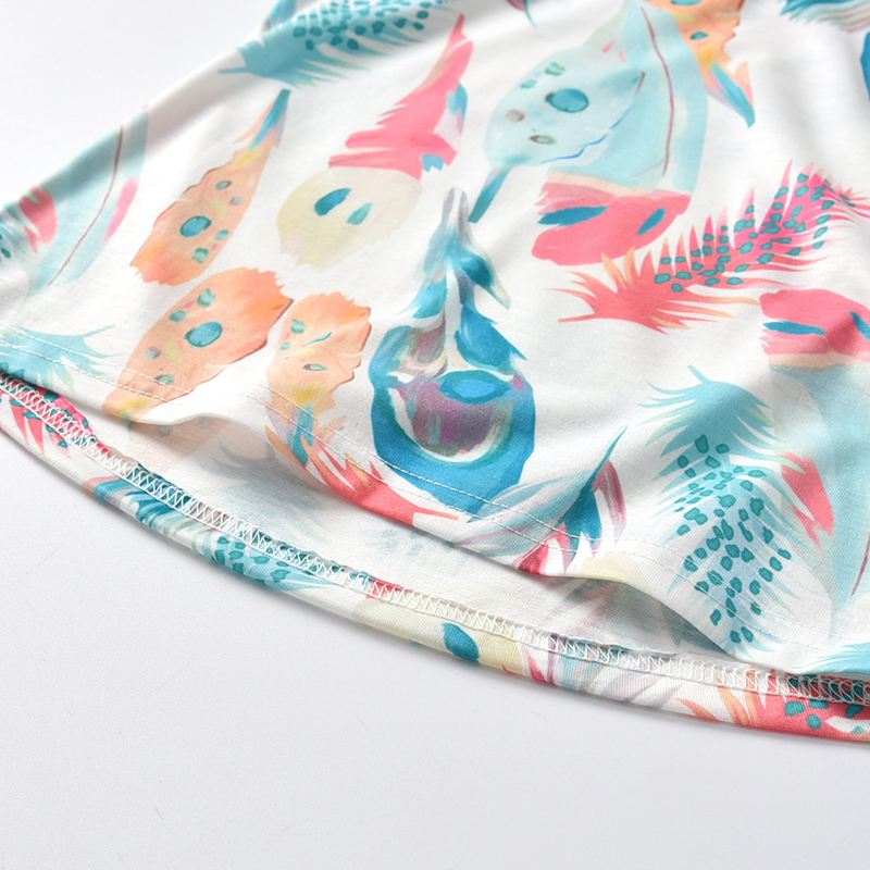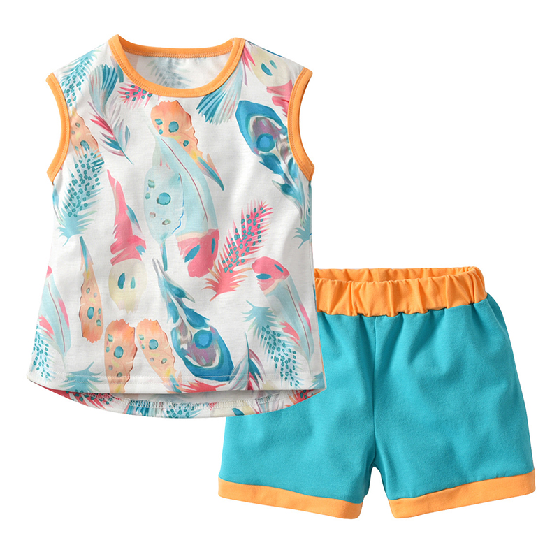Feather Print Toddler Girls Clothing Set Tops Vest + Shorts Summer Clothes For 1Y-7Y