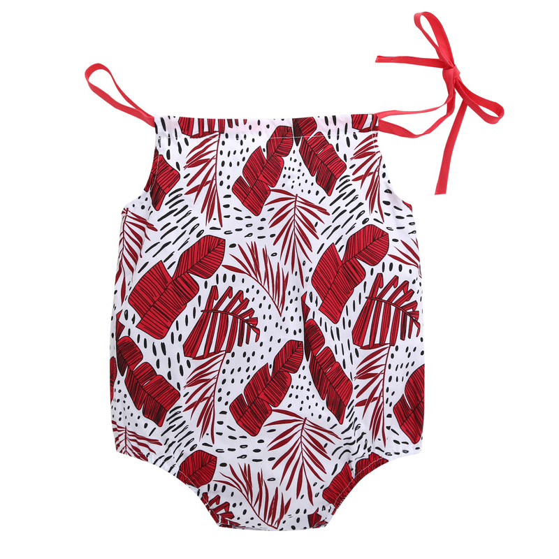 Summer Style Leaf Printed Strap Baby Romper For 0-24M