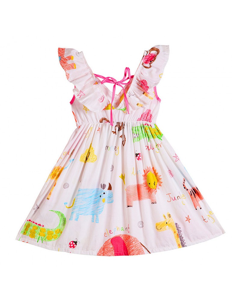 Animal Print Girls Sleeveless V-neck Dress For 2-9Y