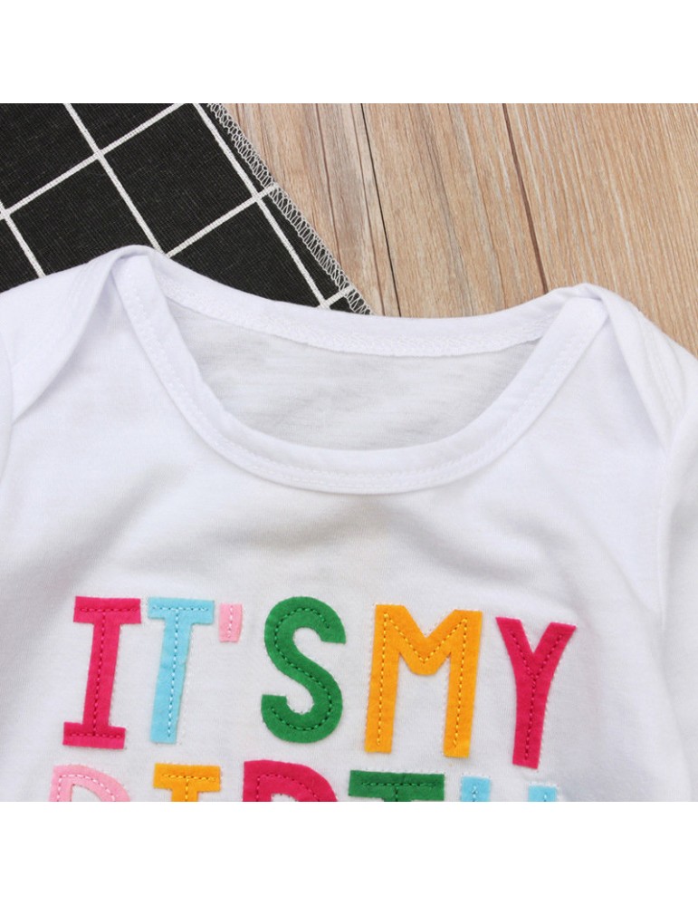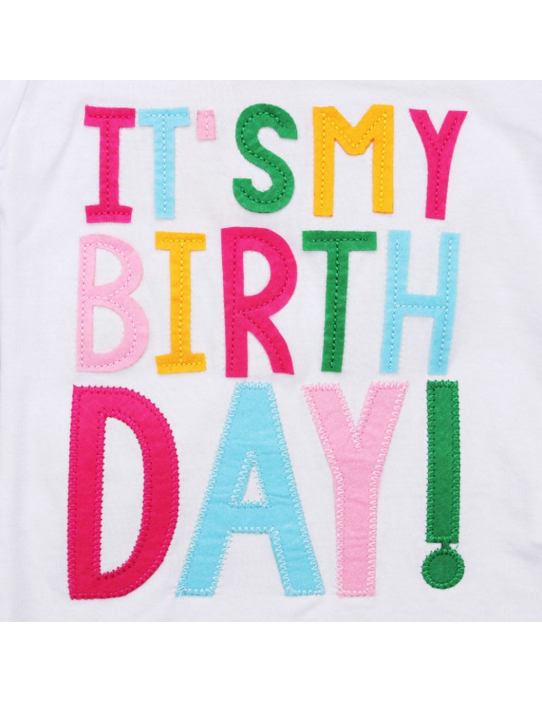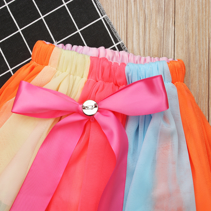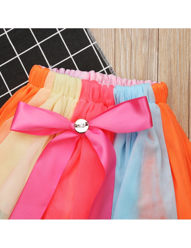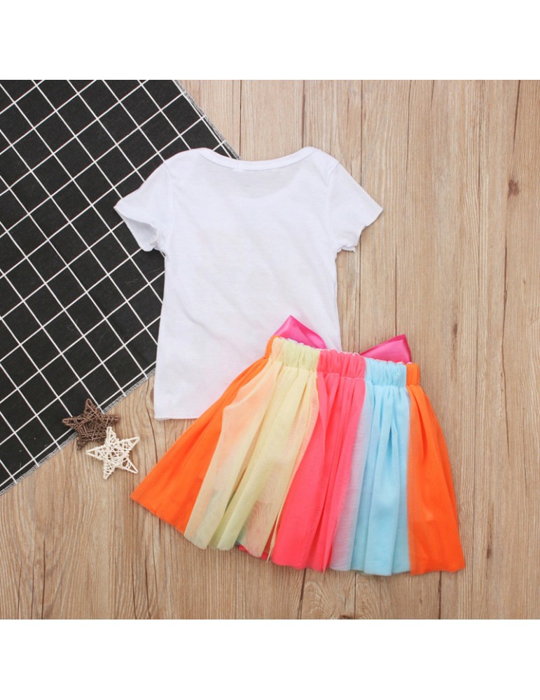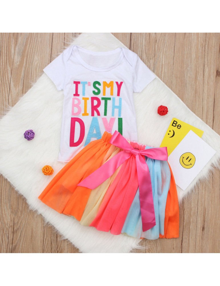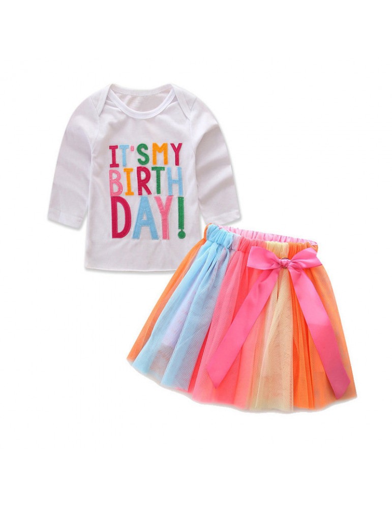 2Pcs Toddlers Girls Colorful Letter Tops Shirt+Lace Skirt Kids Birthday Outfits Set For 1Y-9Y