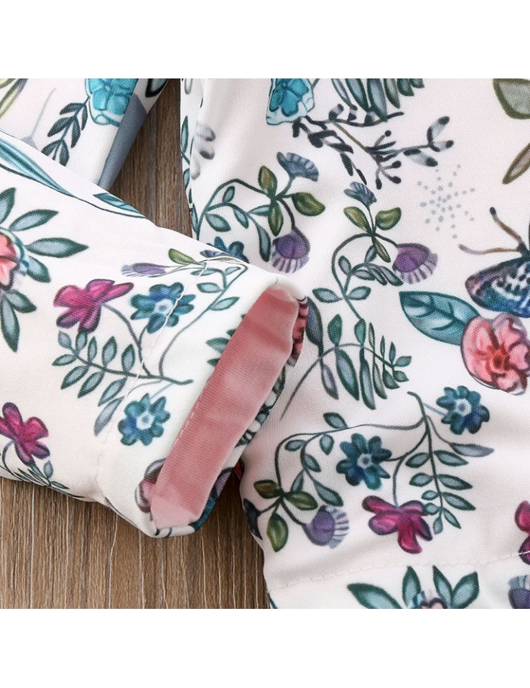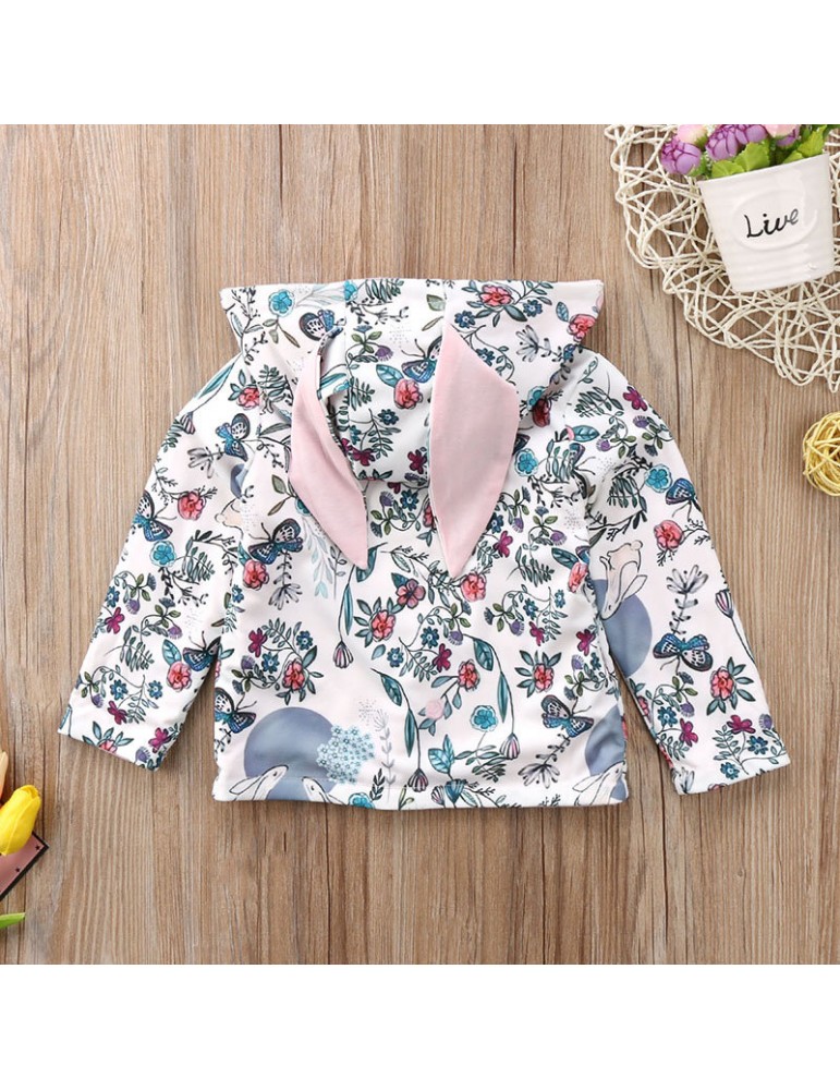 Cute Infant Baby Girls Clothing Long Sleeve Rabbit 3D Ear Floral Jacket Winter Coat