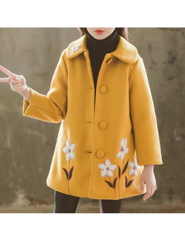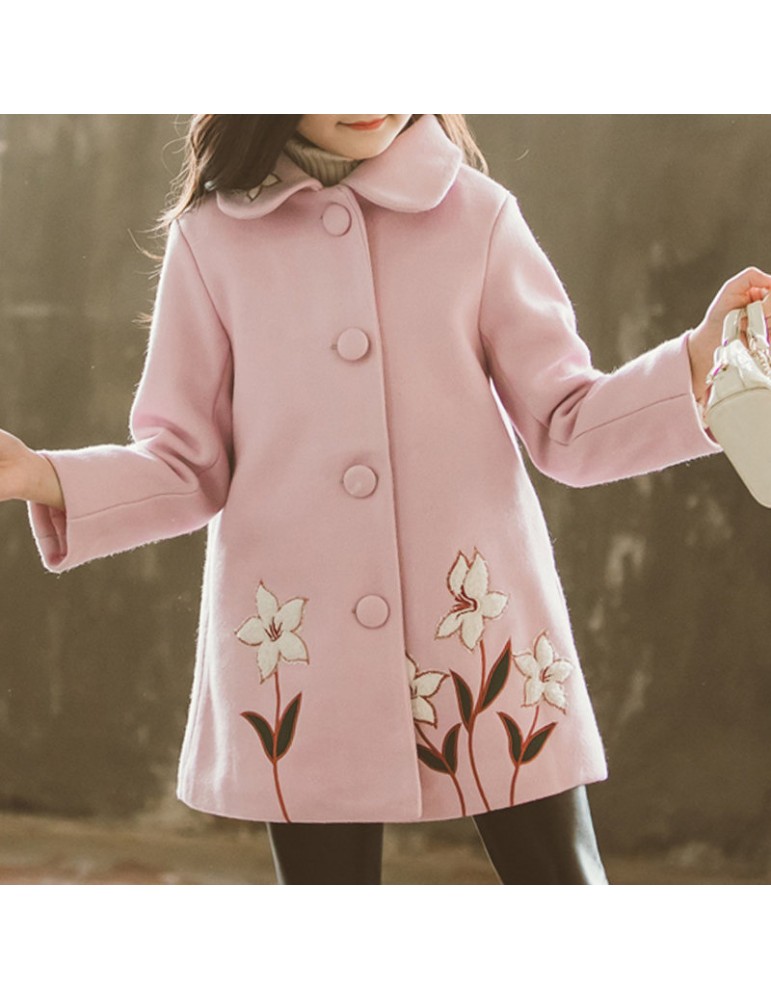 Flower Embroidery Girls Winter Coats Kids Thicken Jackets For 3Y-13Y