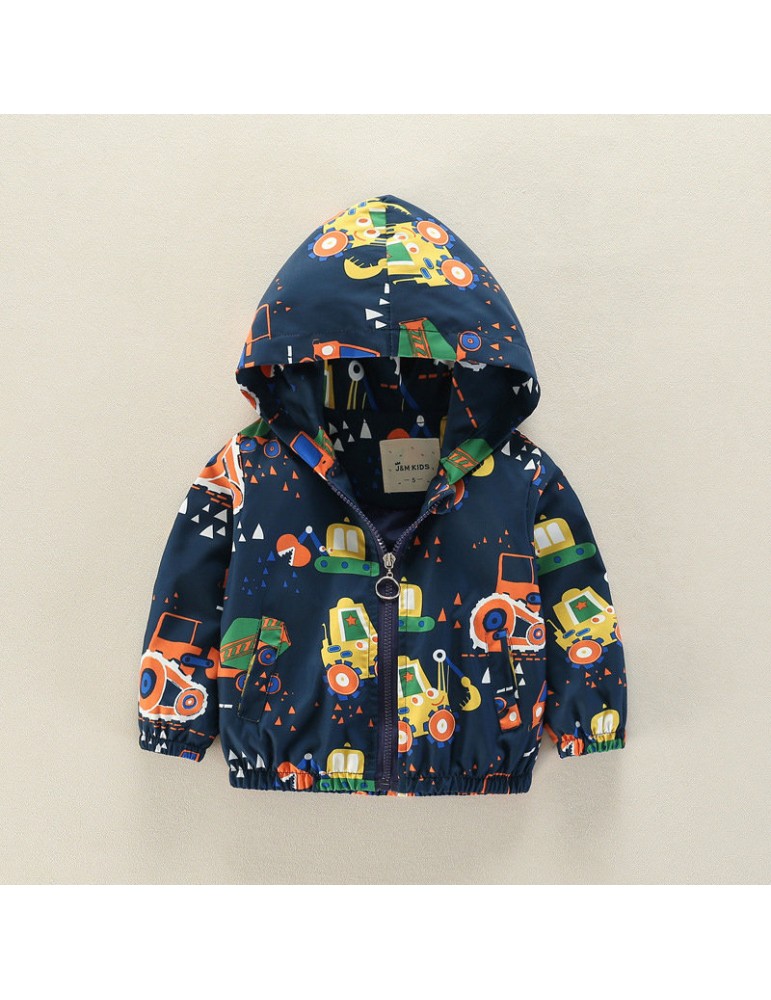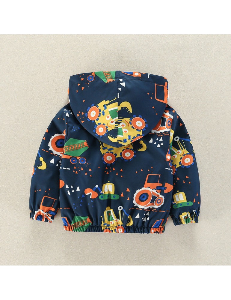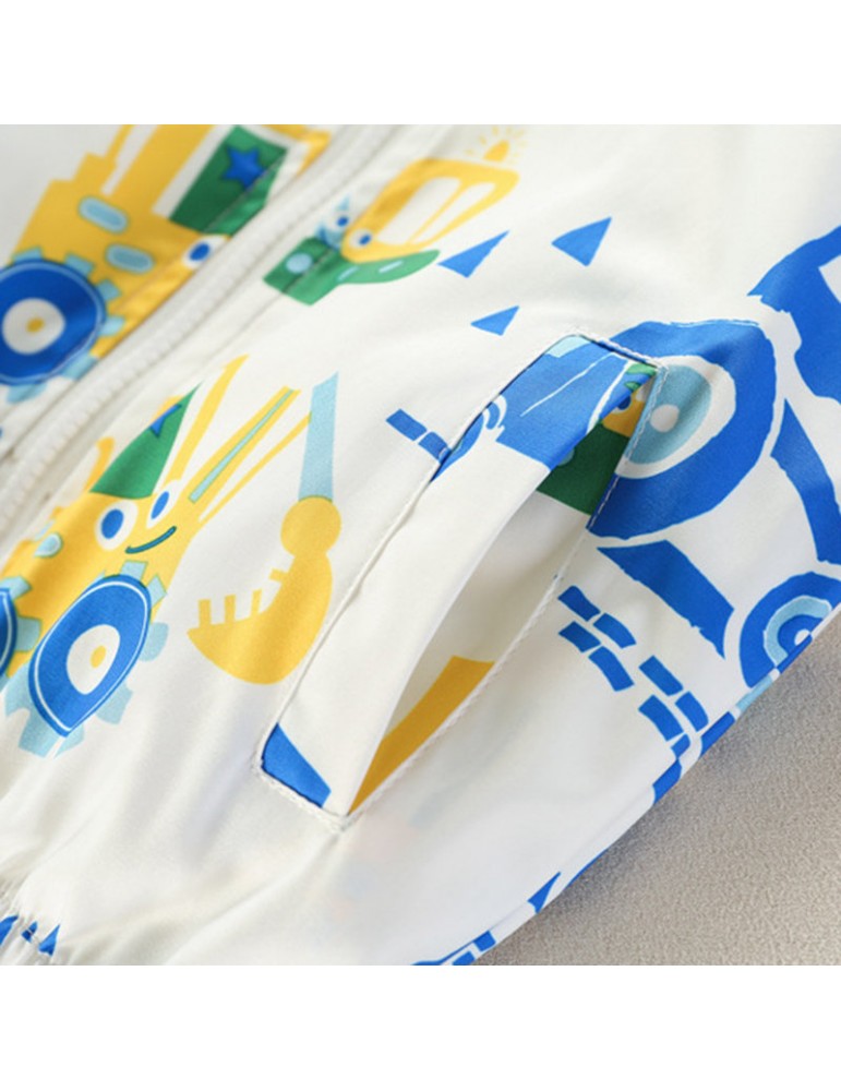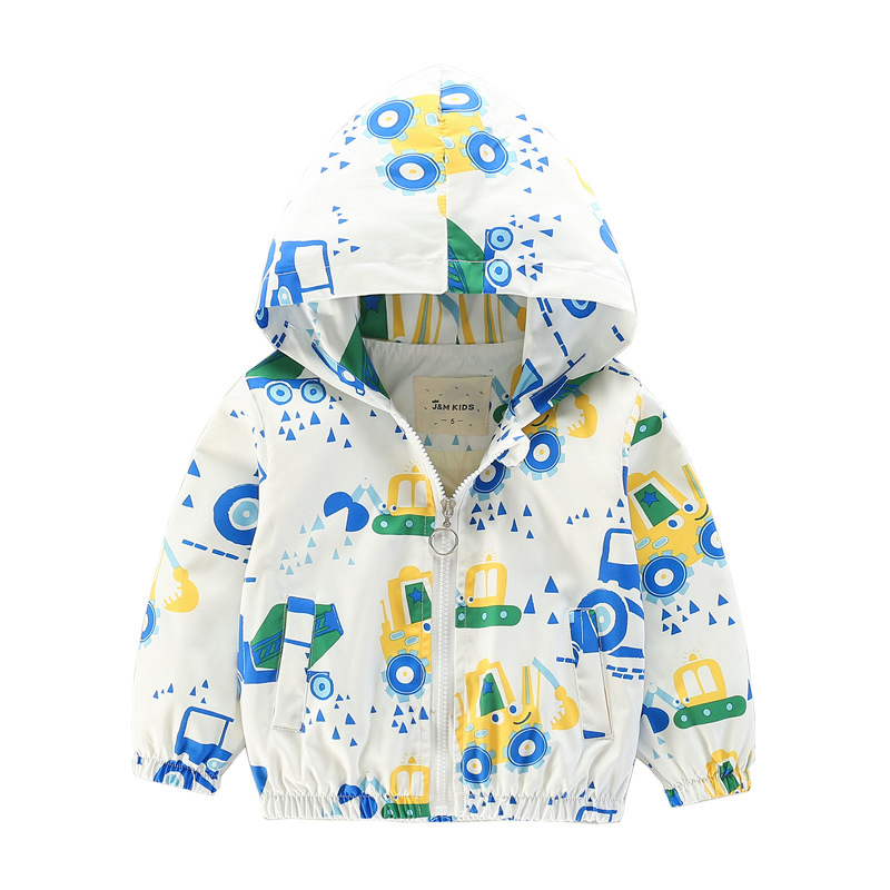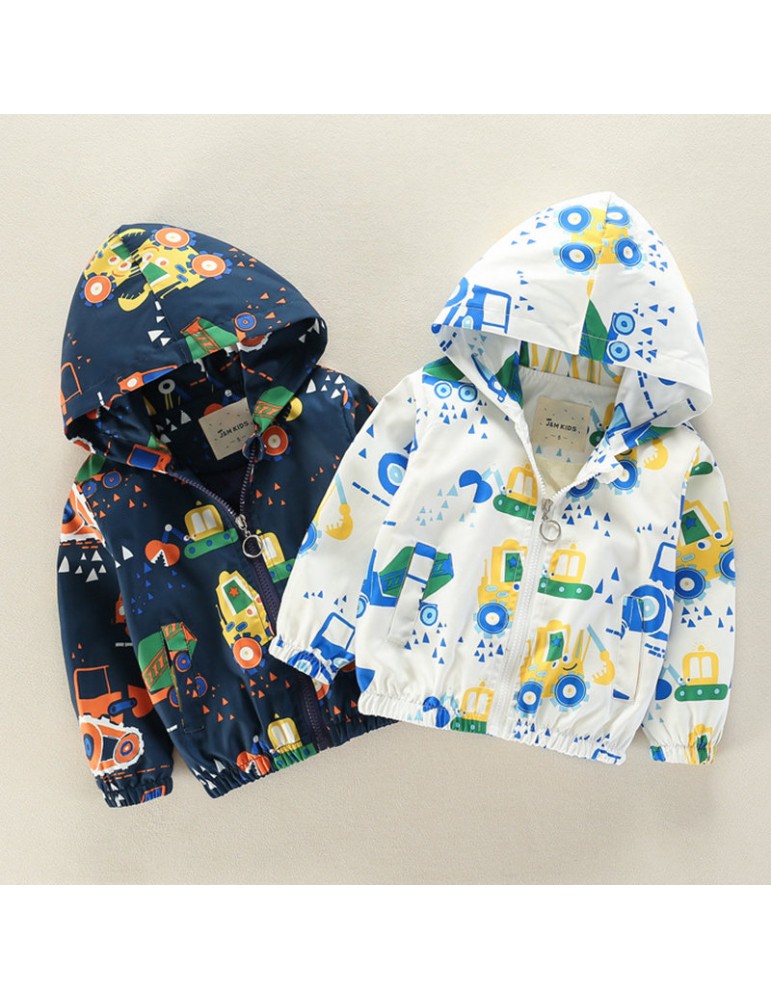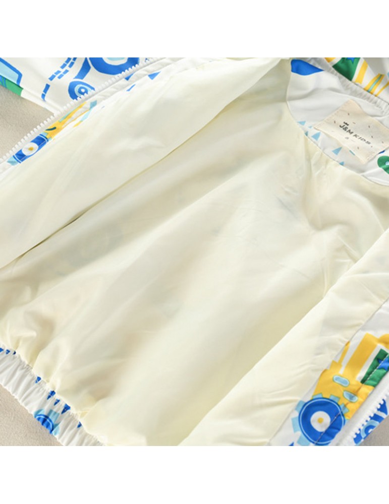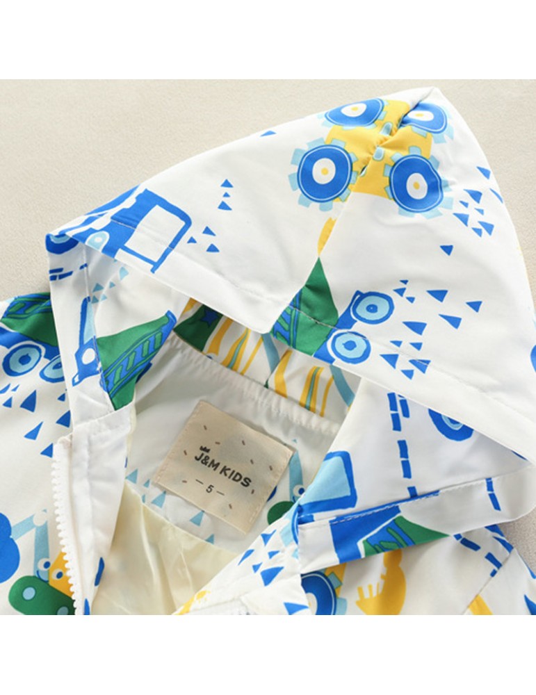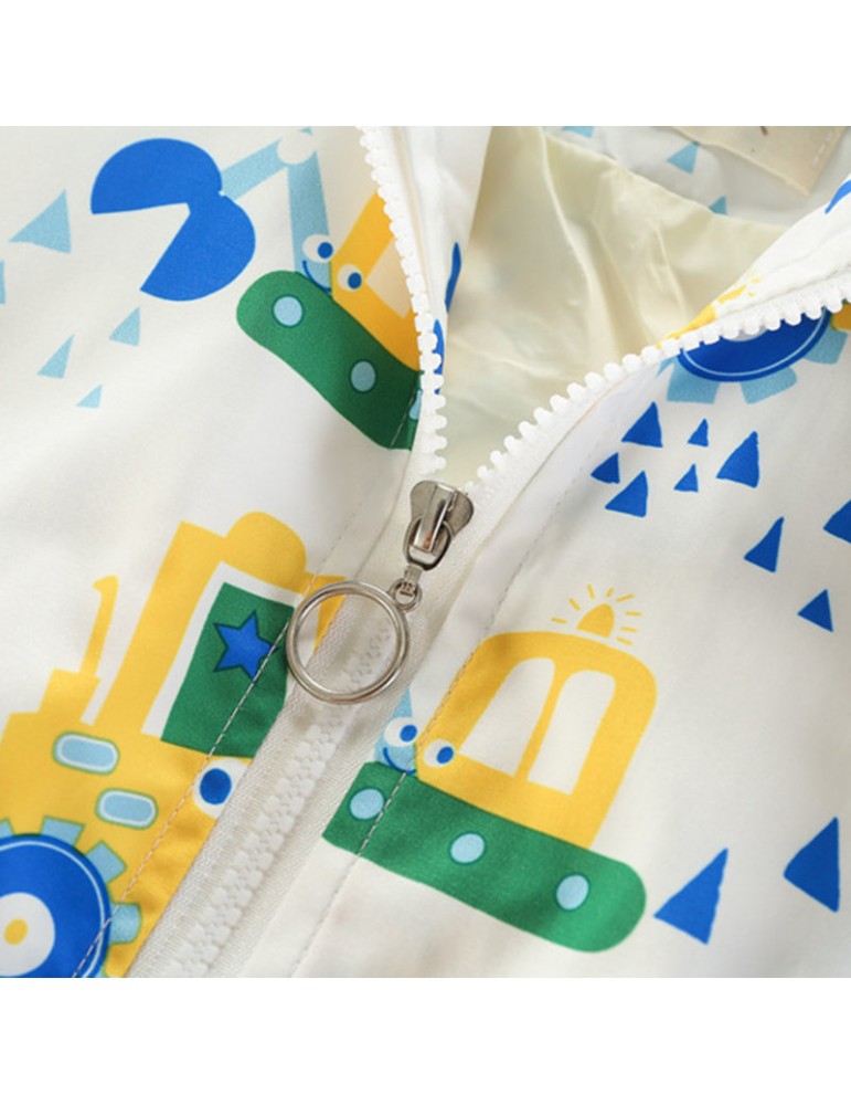 Cartoon Pattern Girls Boys Kids Hooded Coats Windbreaker Jackets For 2Y-9Y