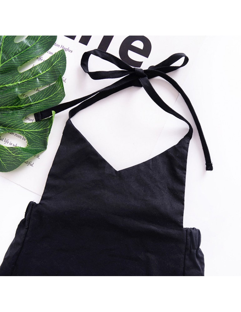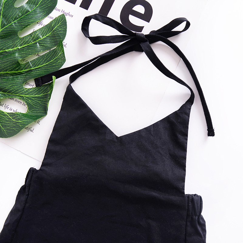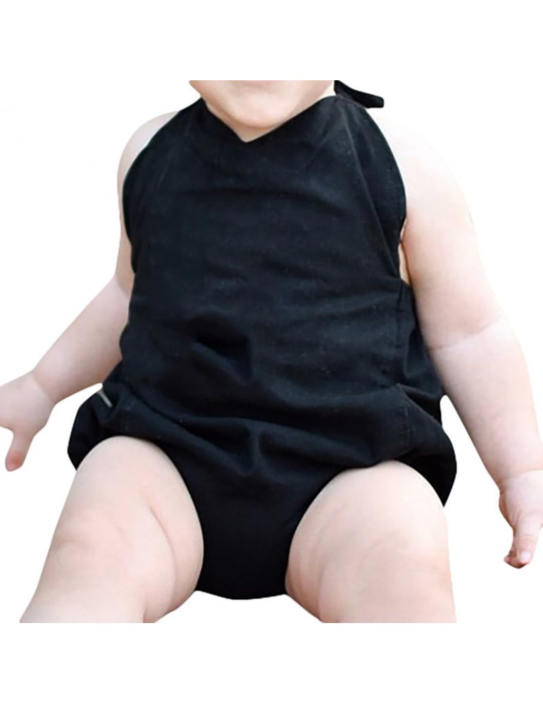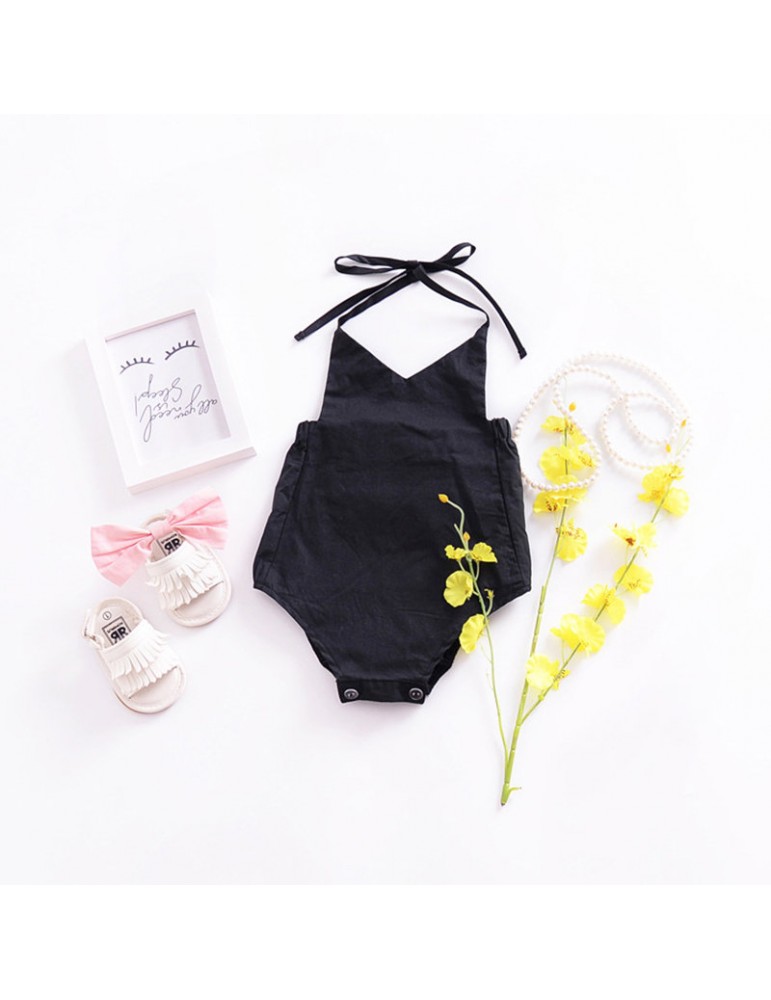 Black Cotton Strap Baby Girls Romper For 0-24M