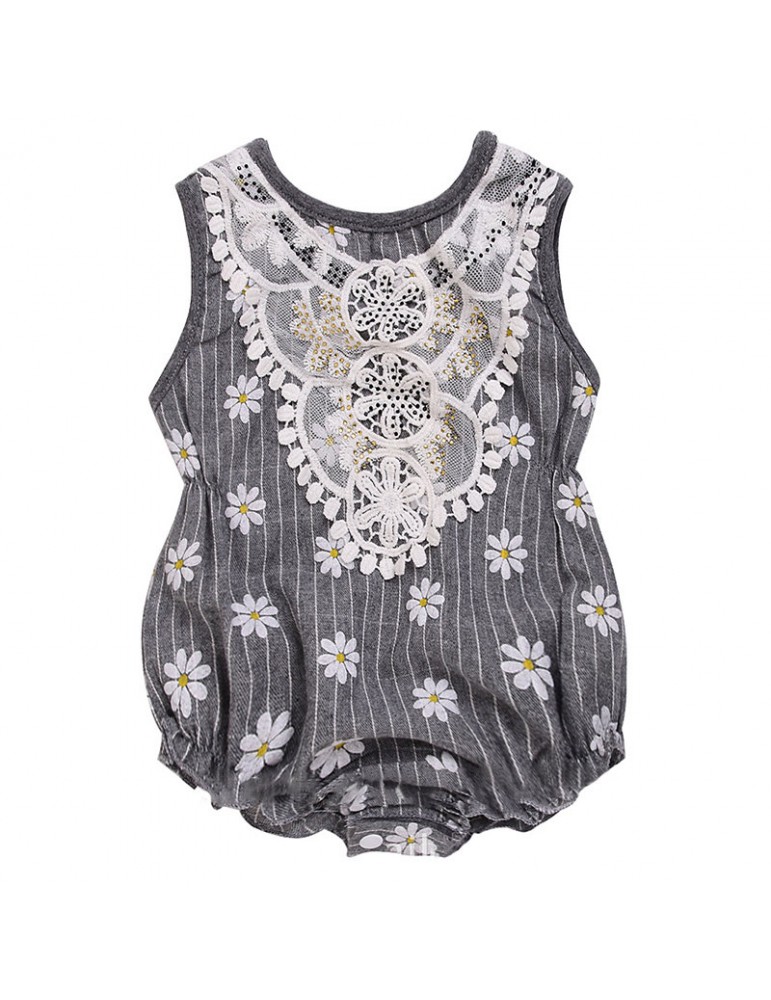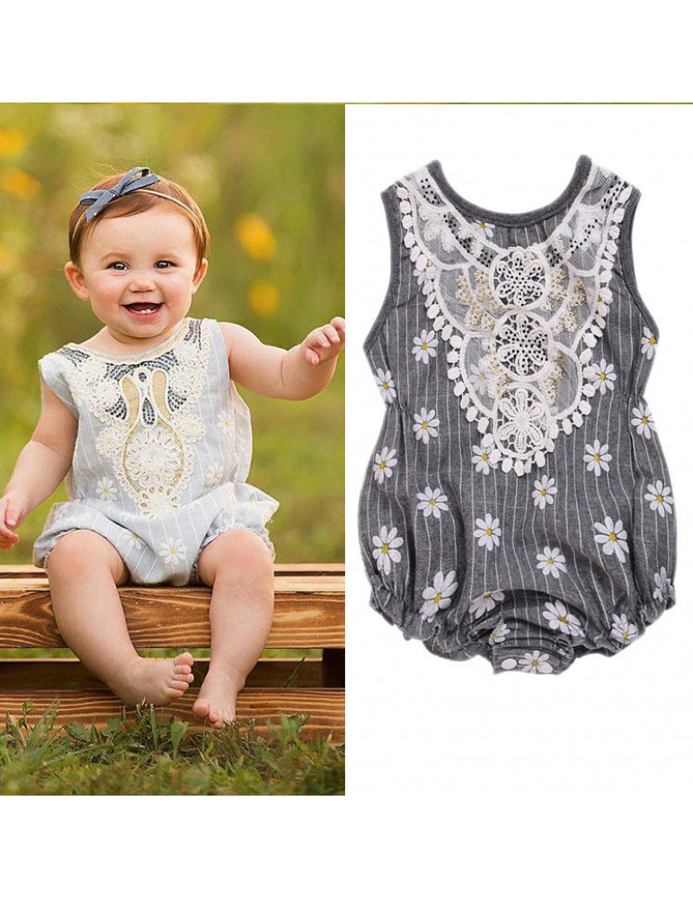 Daisy Flower Print Baby Girls Romper For 0-24M