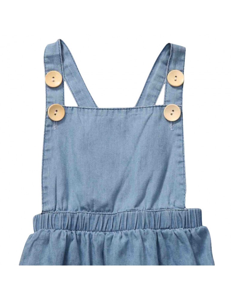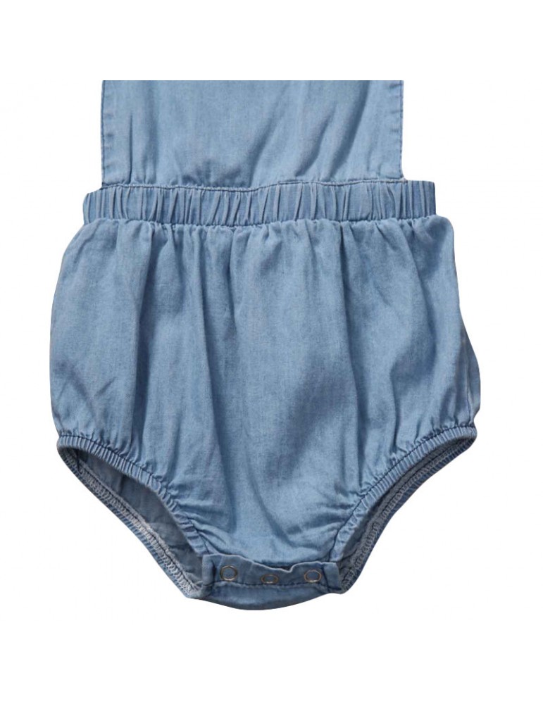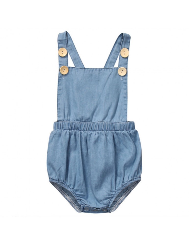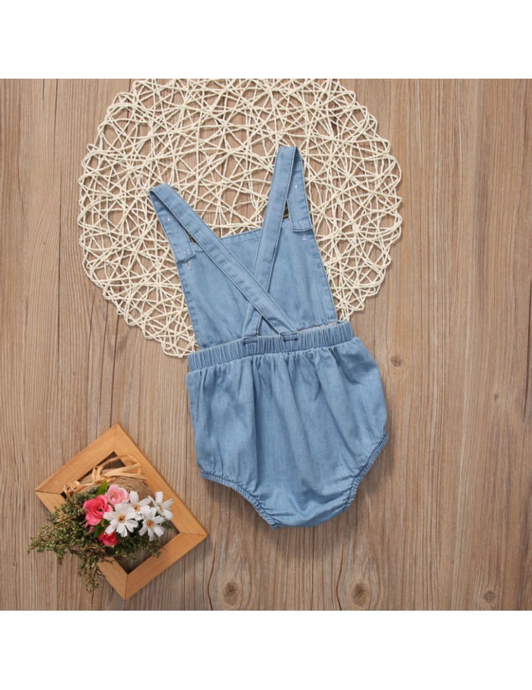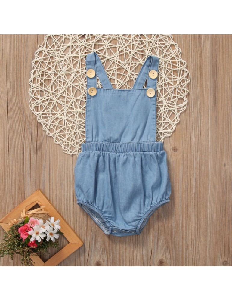 Solid Color Baby Girls Denim Backless Romper For 0-24M