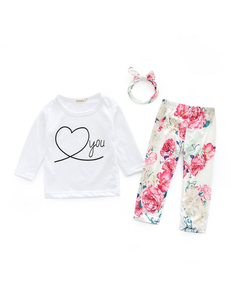 3Pcs Floral Baby Girls Long Sleeve Sets For 0-24M