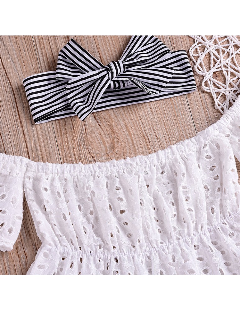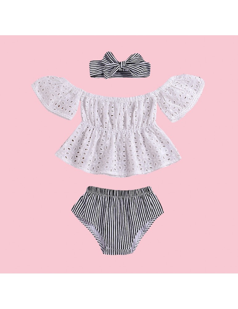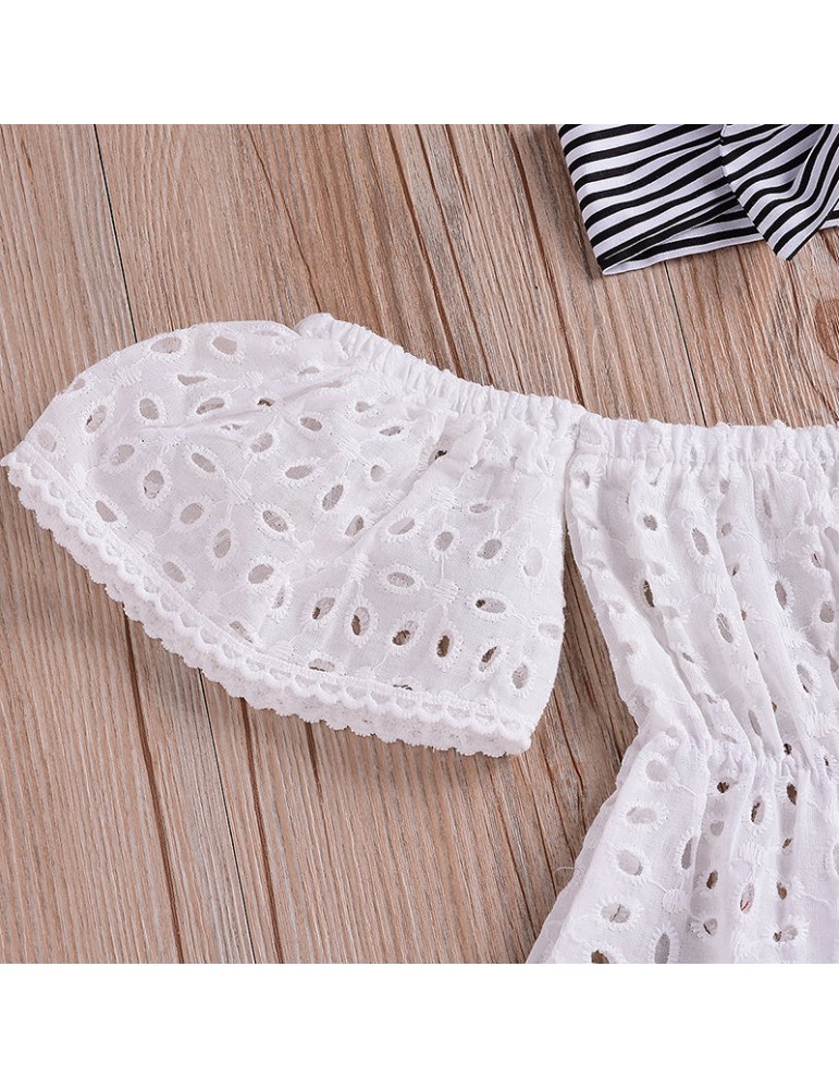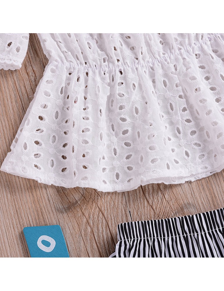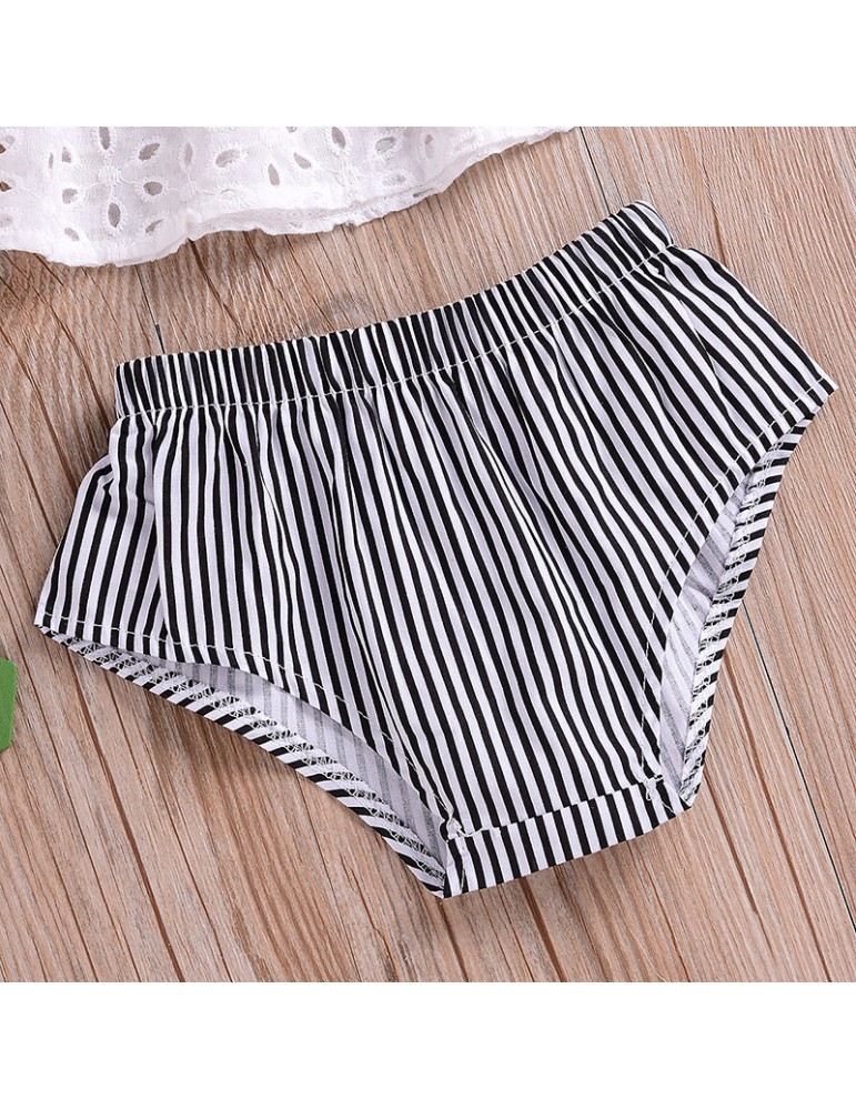 Lace Striped Girls Sets Trumpet Sleeve Tops +Shorts For 0-2Years