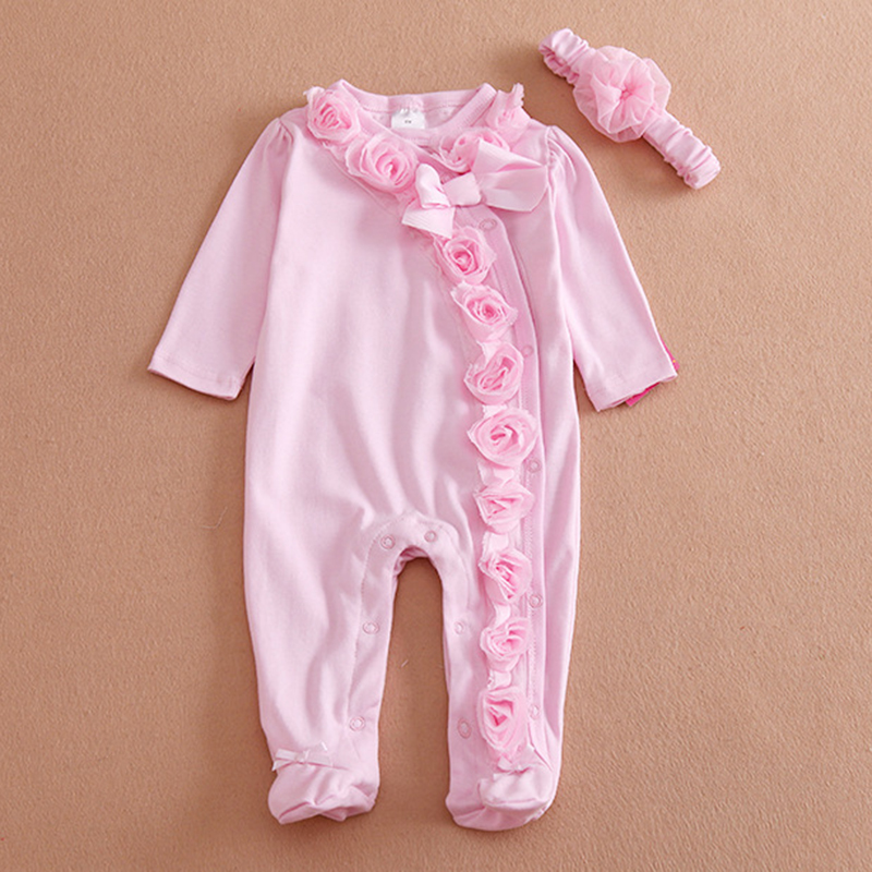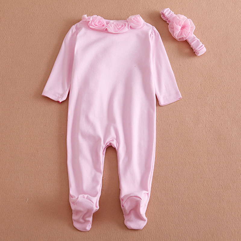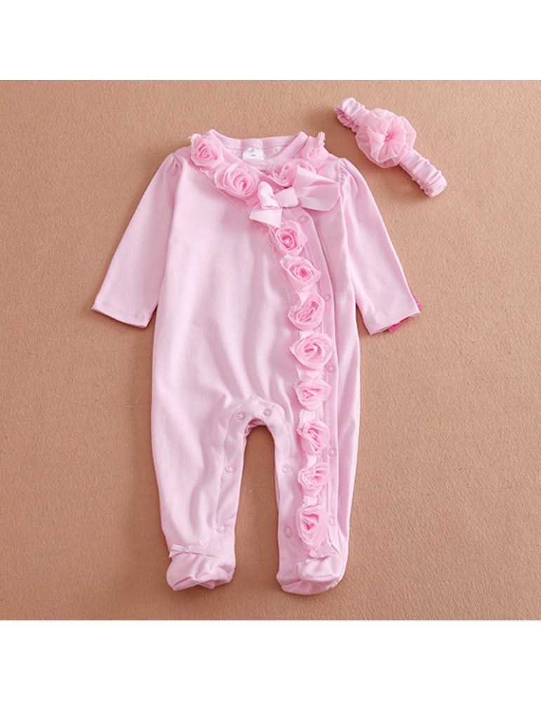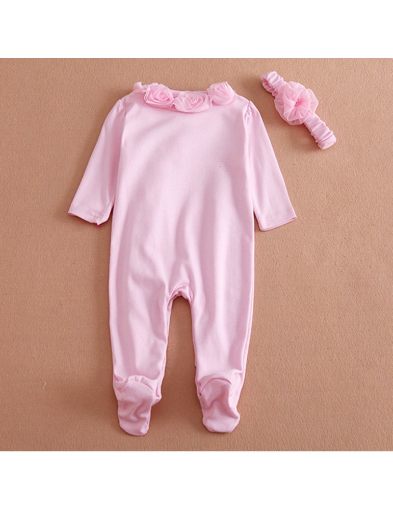 Cotton Flower Girls Rompers & Headband Set For 0-9M