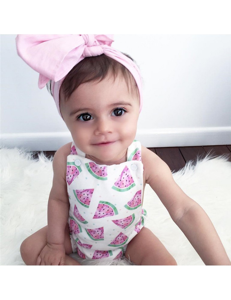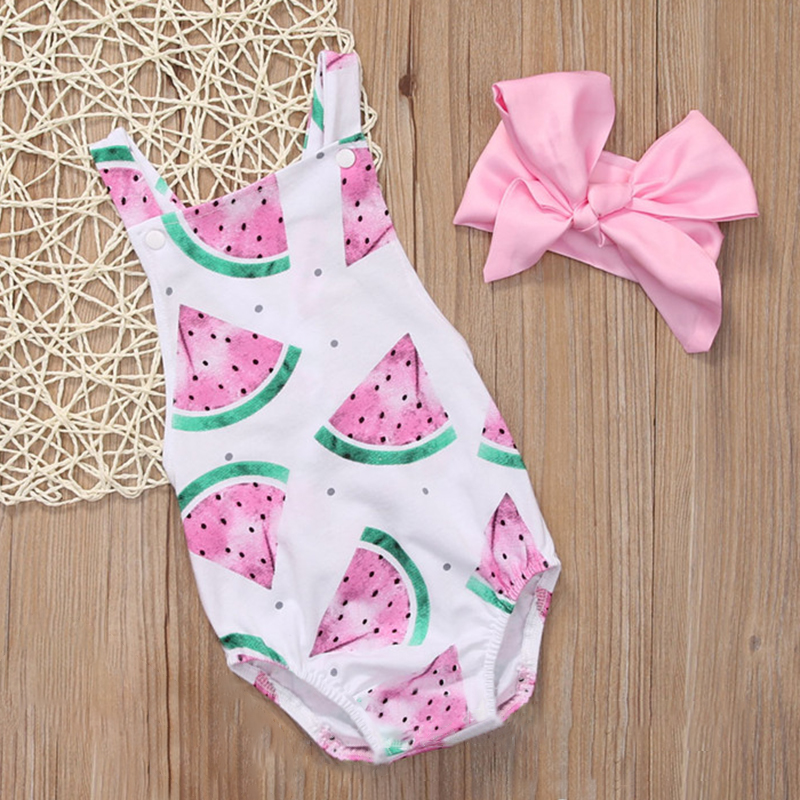 Baby Girls Watermelons Print Backless Ruffle Bodysuit With Headband