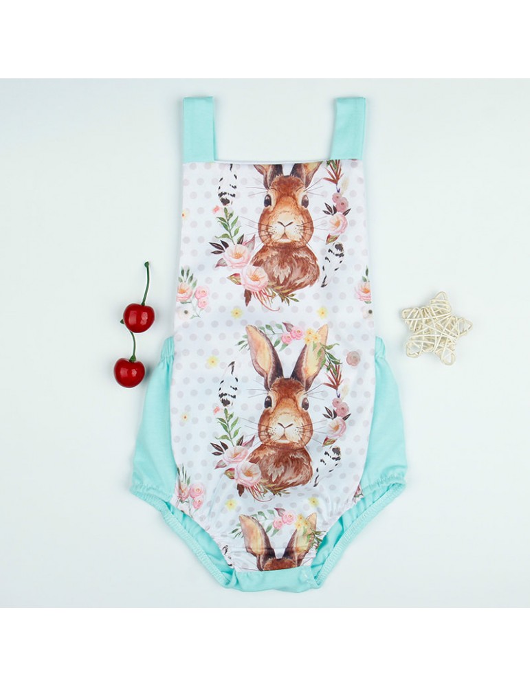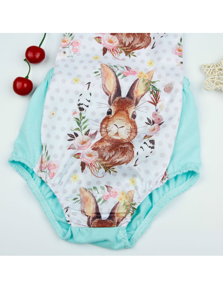 Bunny Printed Baby Girls Backless Jumpsuit Romper For 0-24M
