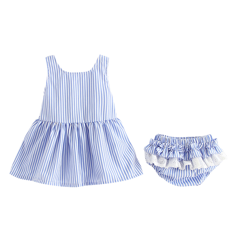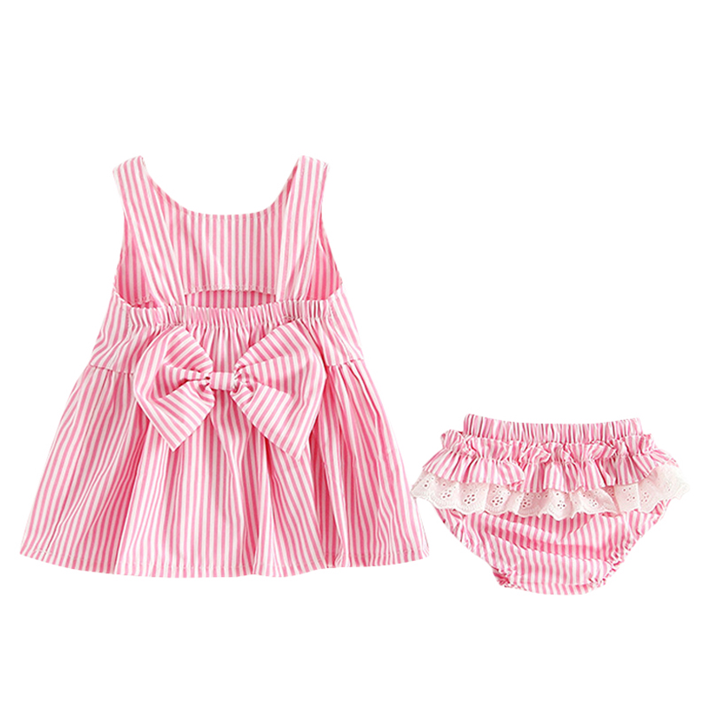Pink/Blue Striped Baby Girls Summer Dresses Set For 1Y-5Y