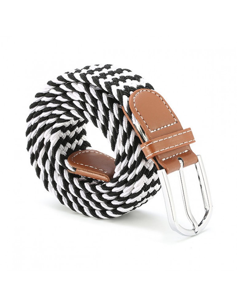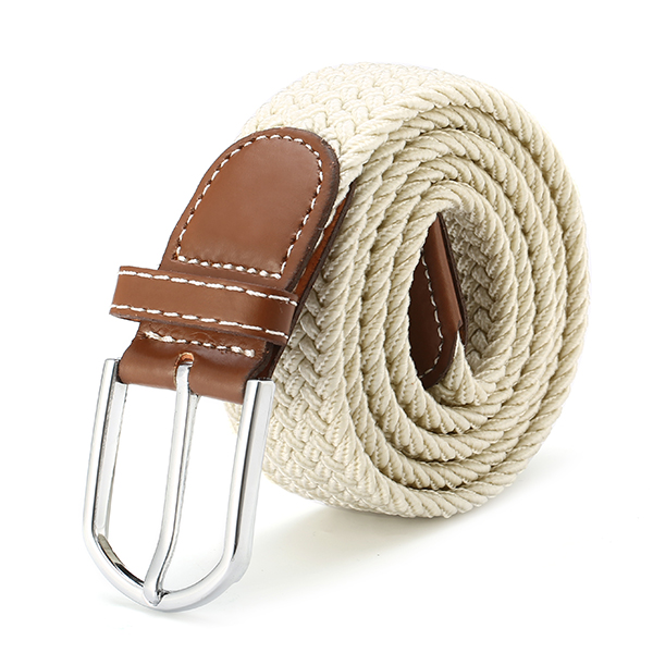 125CM Men Women Stretch Braided Elastic Woven Leather Pin Buckle Belt