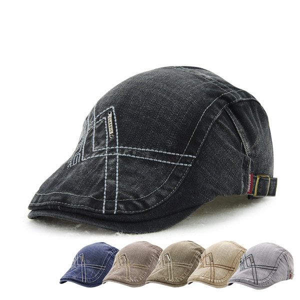 Men Denim Washing Beret Cap Casual Outdoor Sun Visor Hat