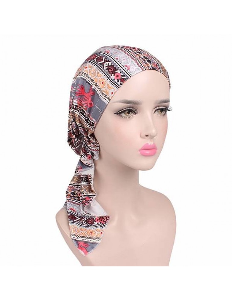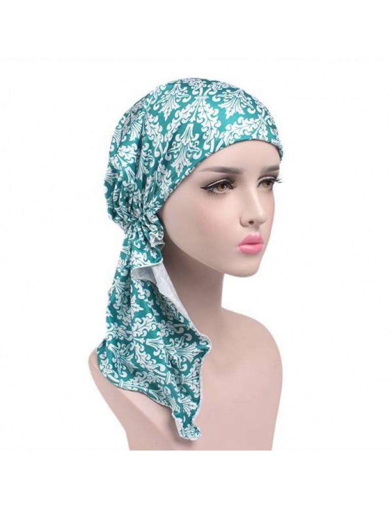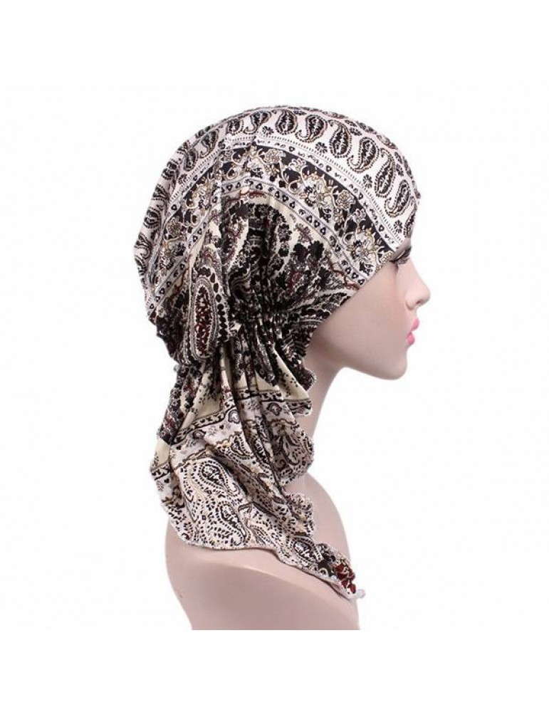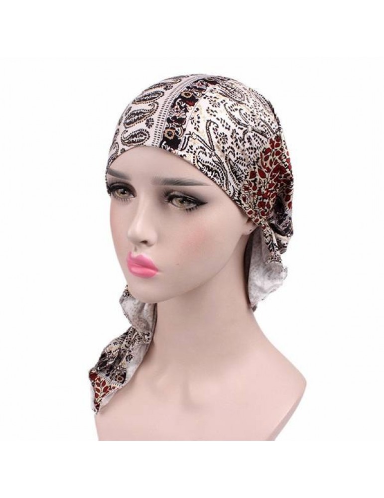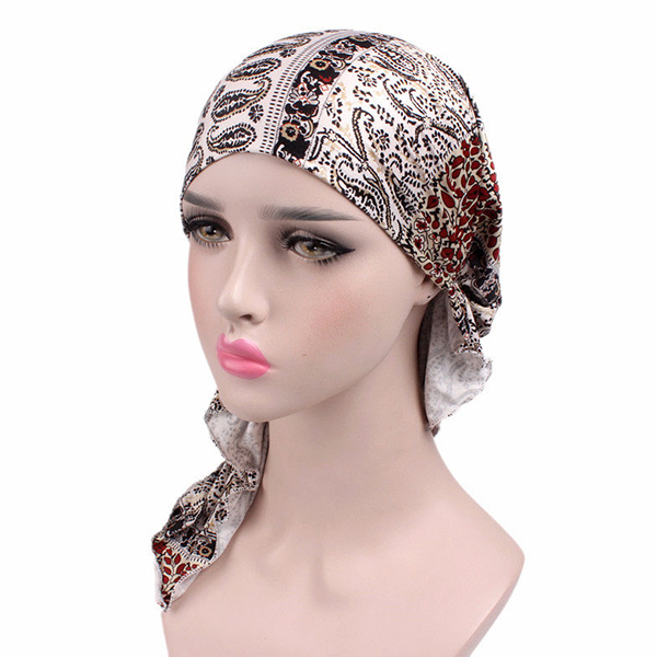 Women Printing Good Elastic Cotton Hat Vintage Turban Gardening Beanie Cap