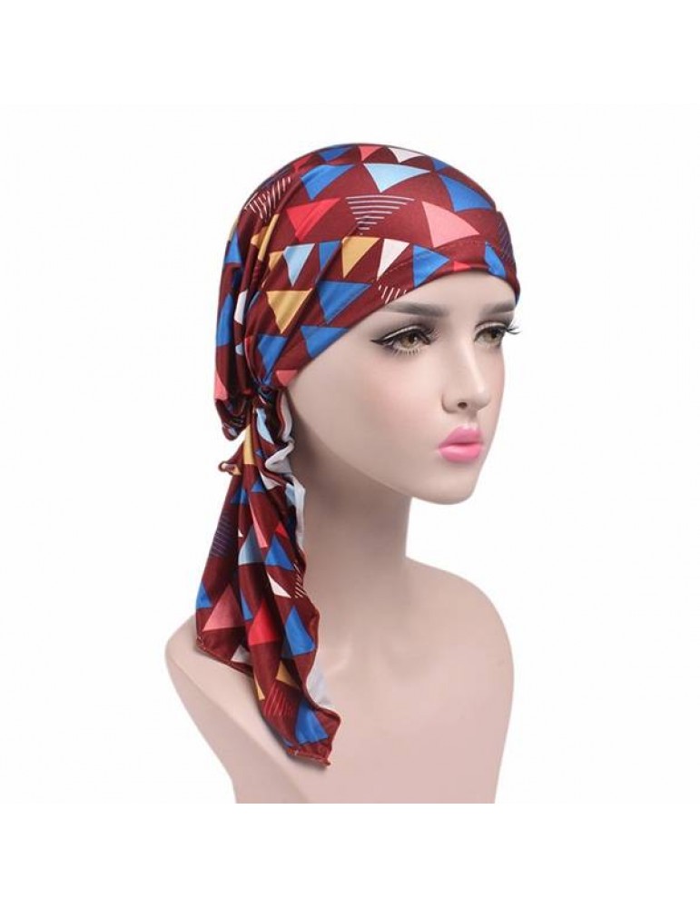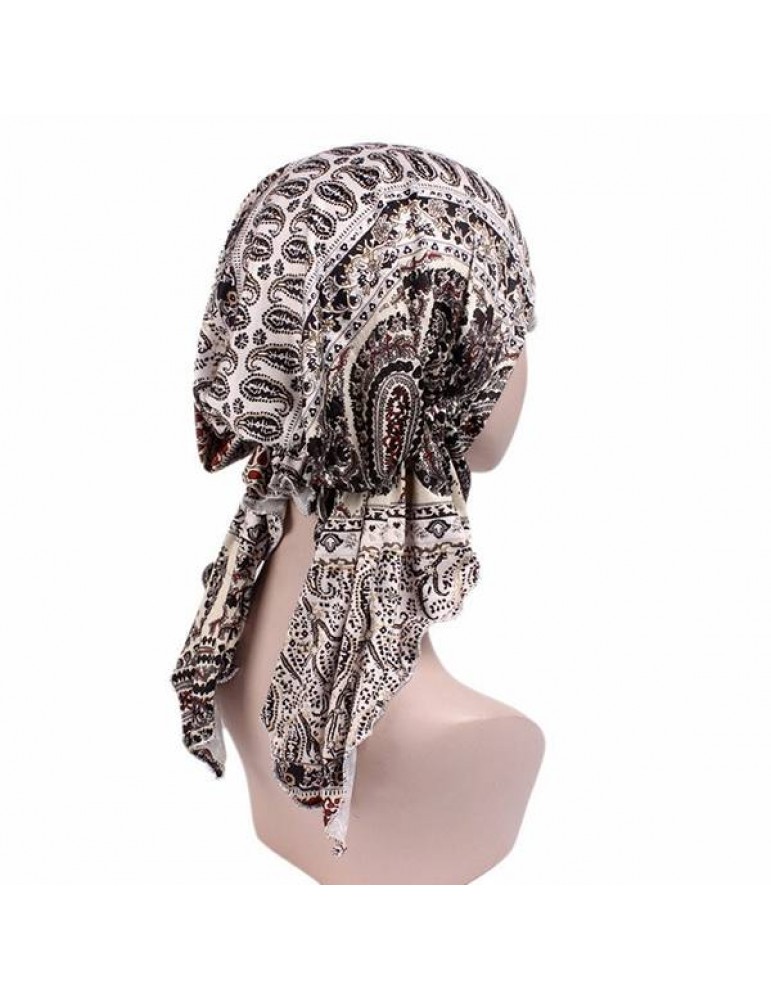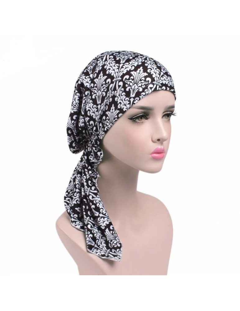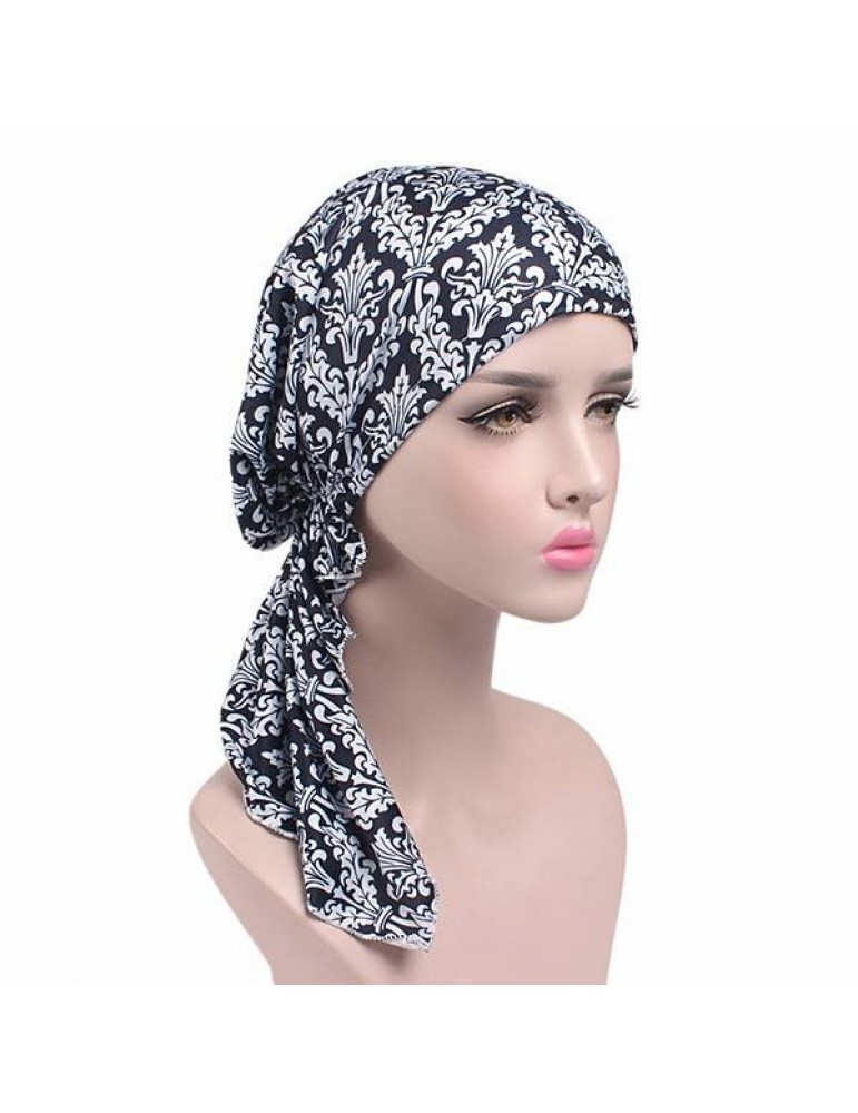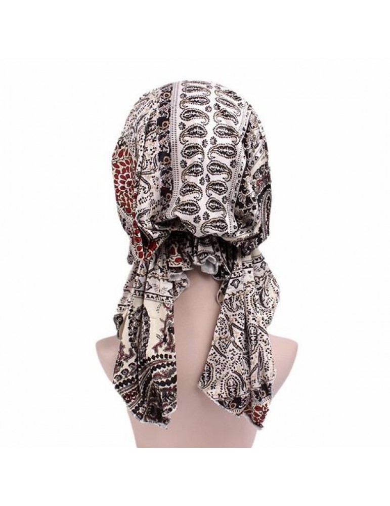 Women Printing Good Elastic Cotton Hat Vintage Turban Gardening Beanie Cap