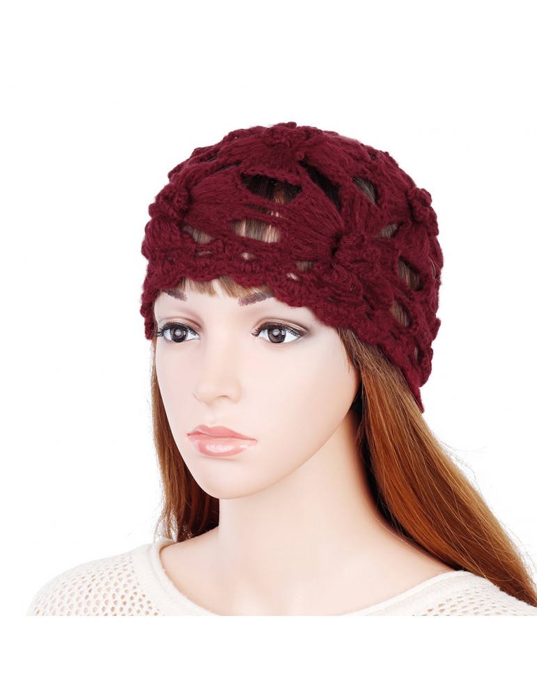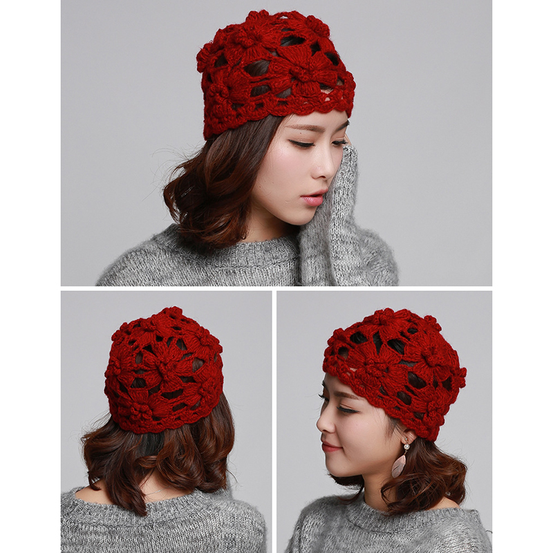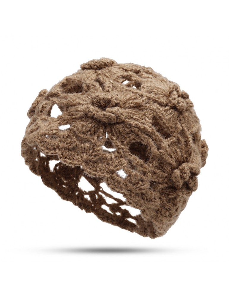 Women Wool Beanie Cap Knitted Lace Hand-knitted Hat Crochet Decoration Hat