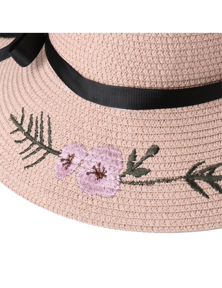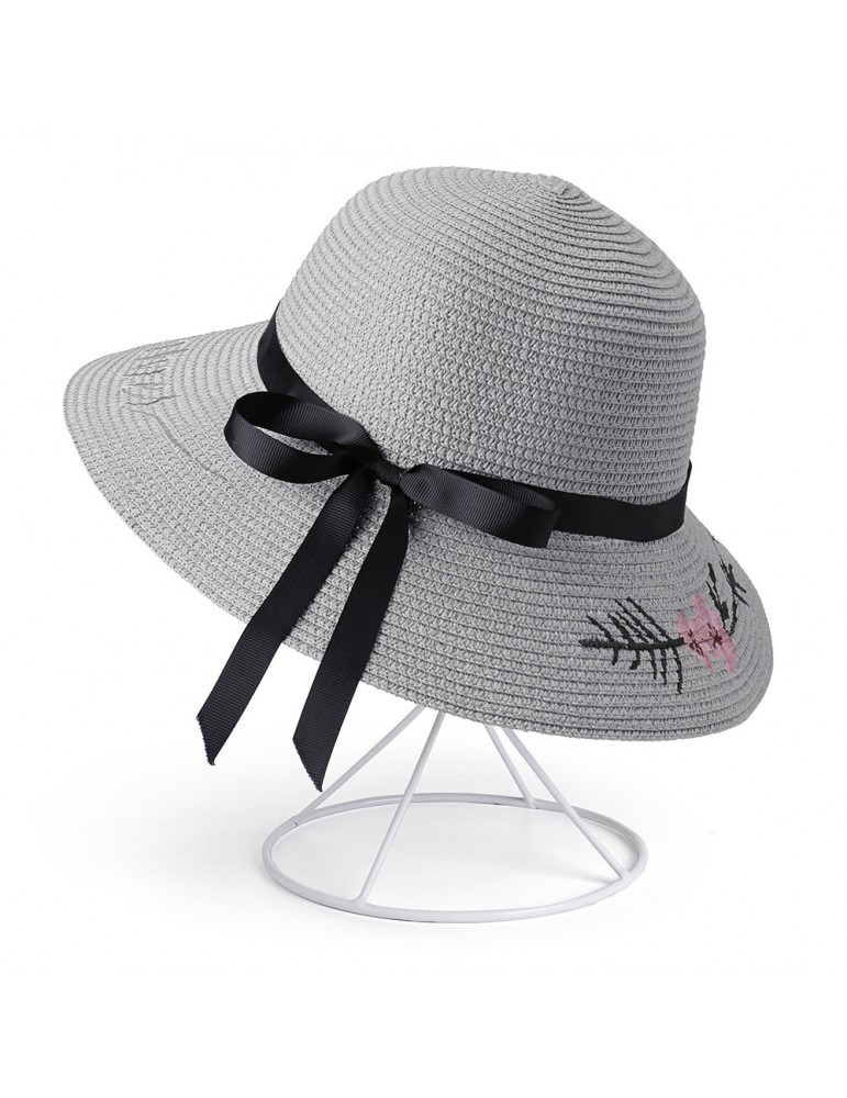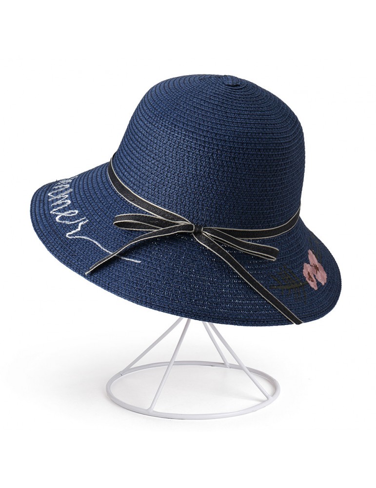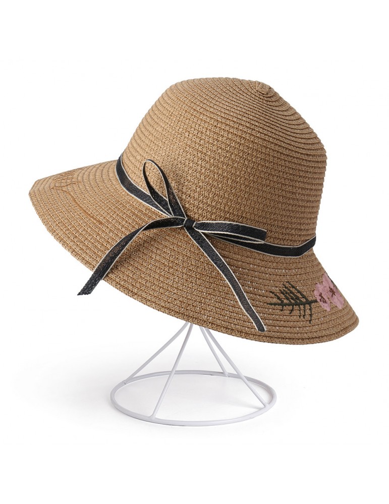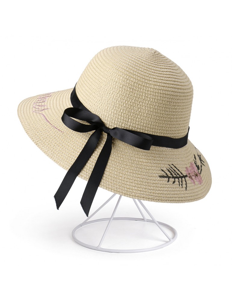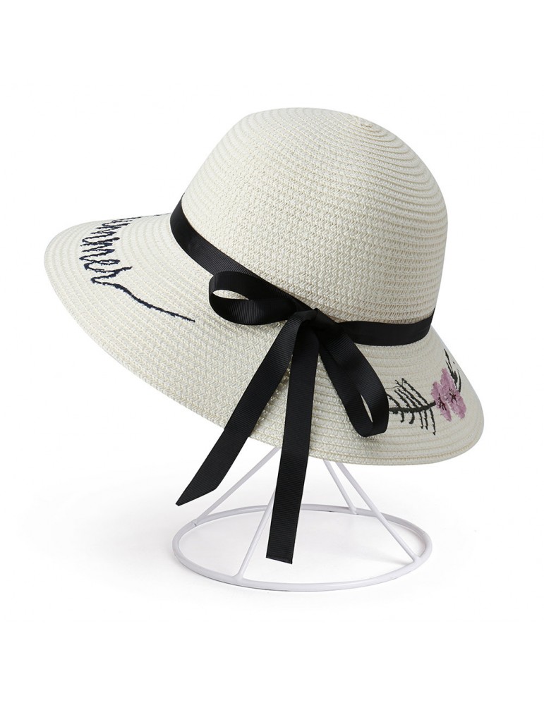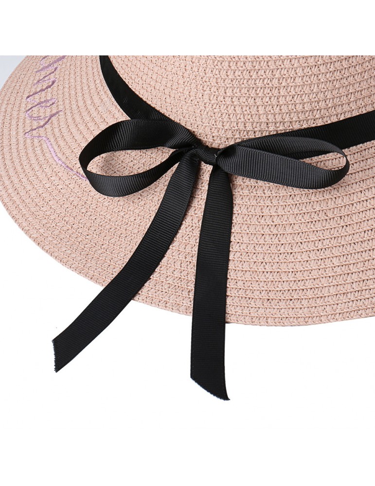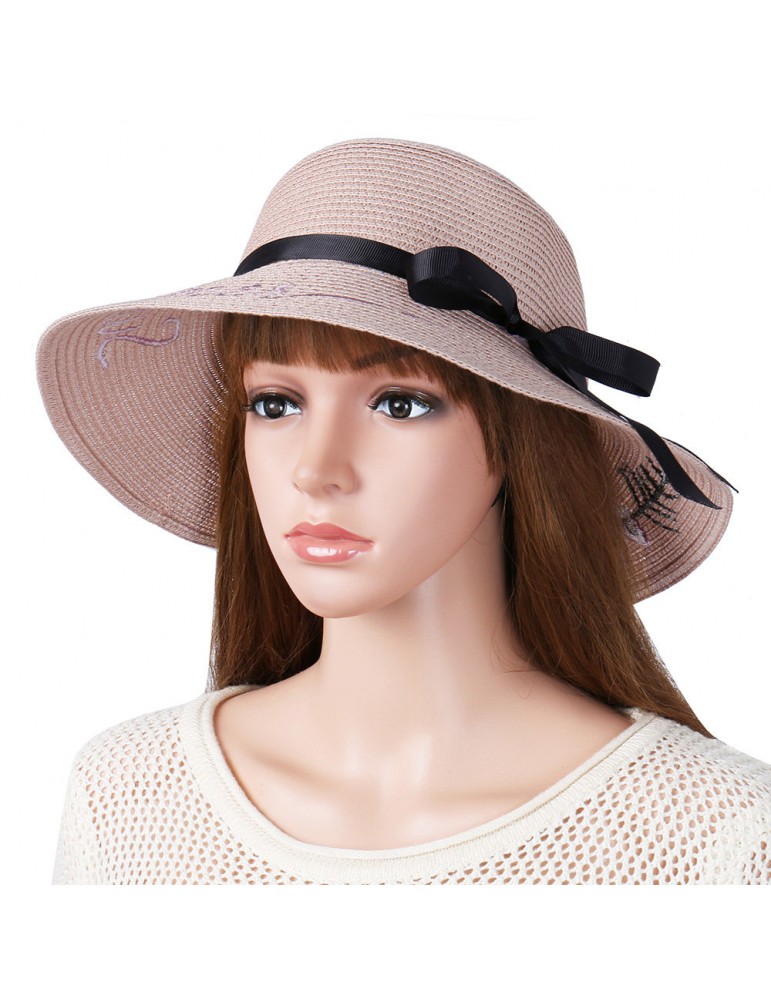 Women Bow Foldable Sunscreen Bucket Straw Hat Outdoor Casual Travel Beach Sea Hat