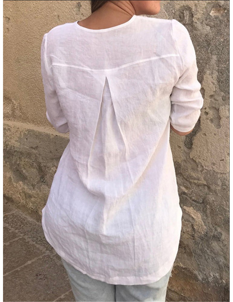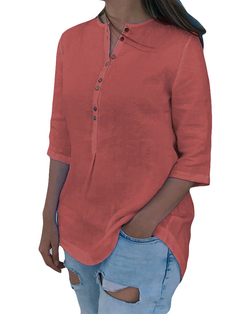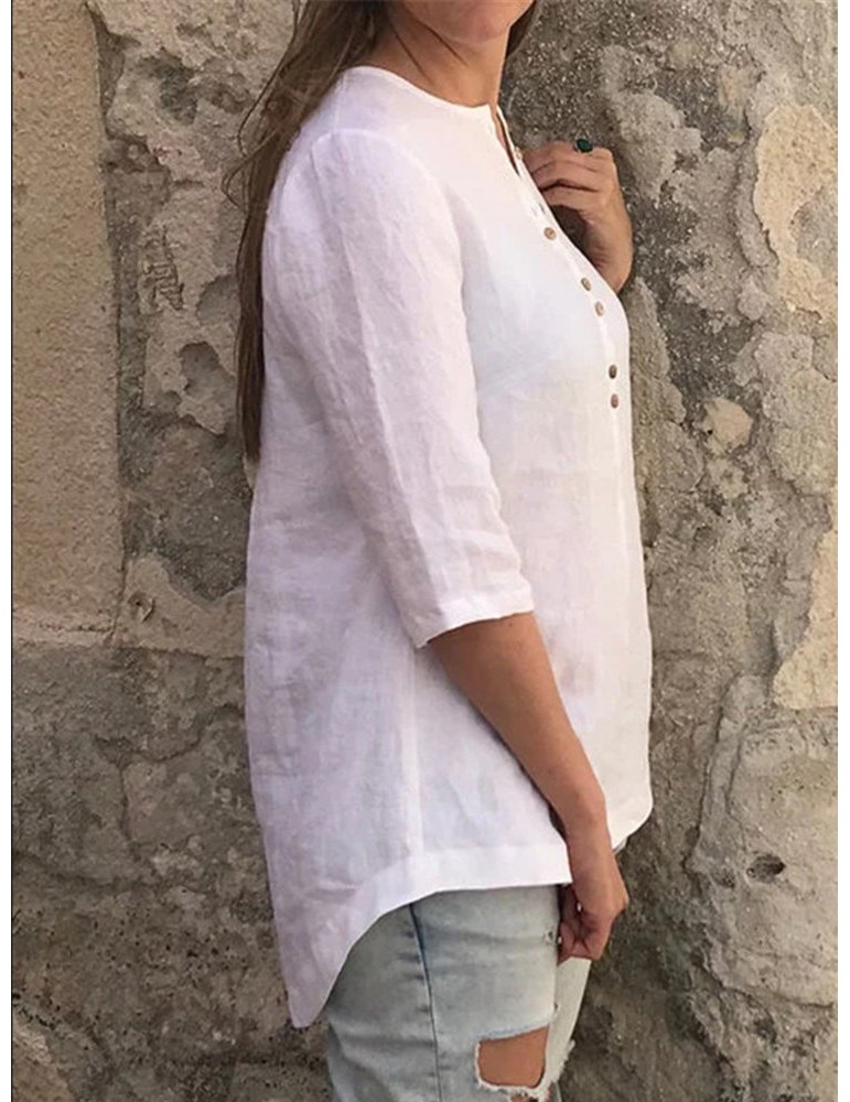 Casual Half Sleeve Solid Color Crew Neck High Low Shirt