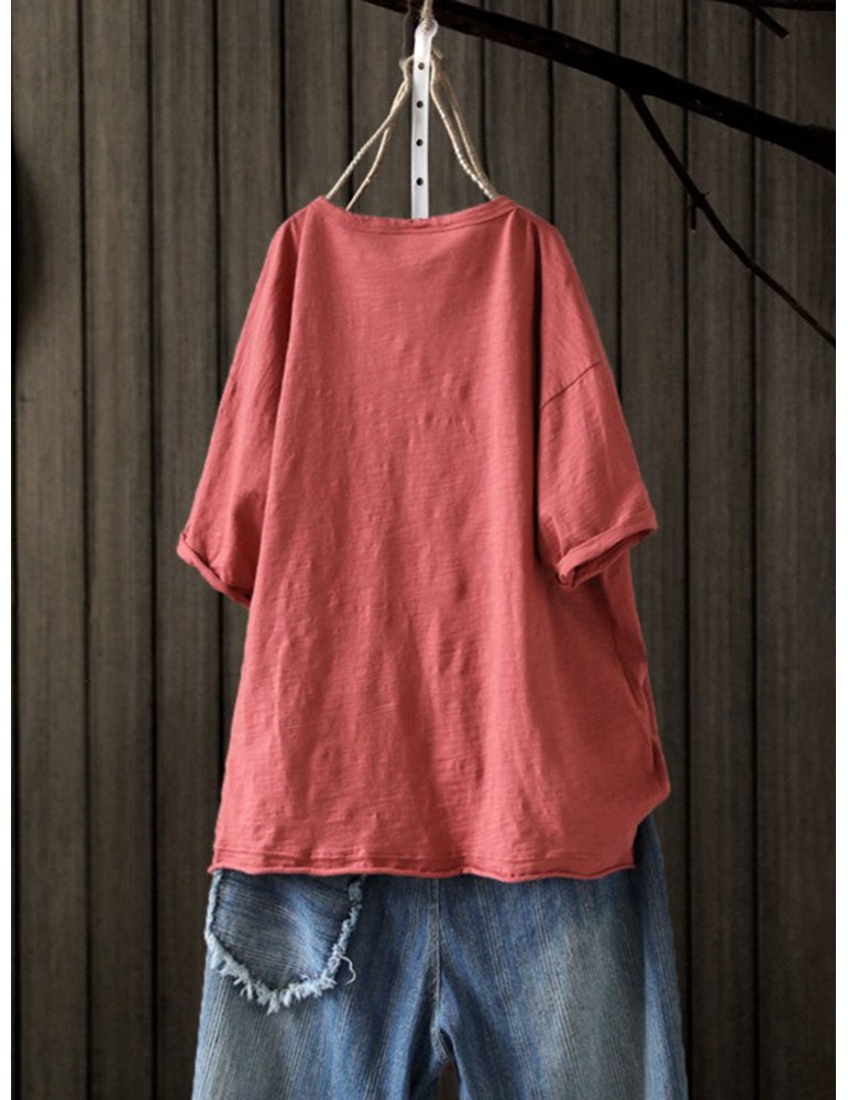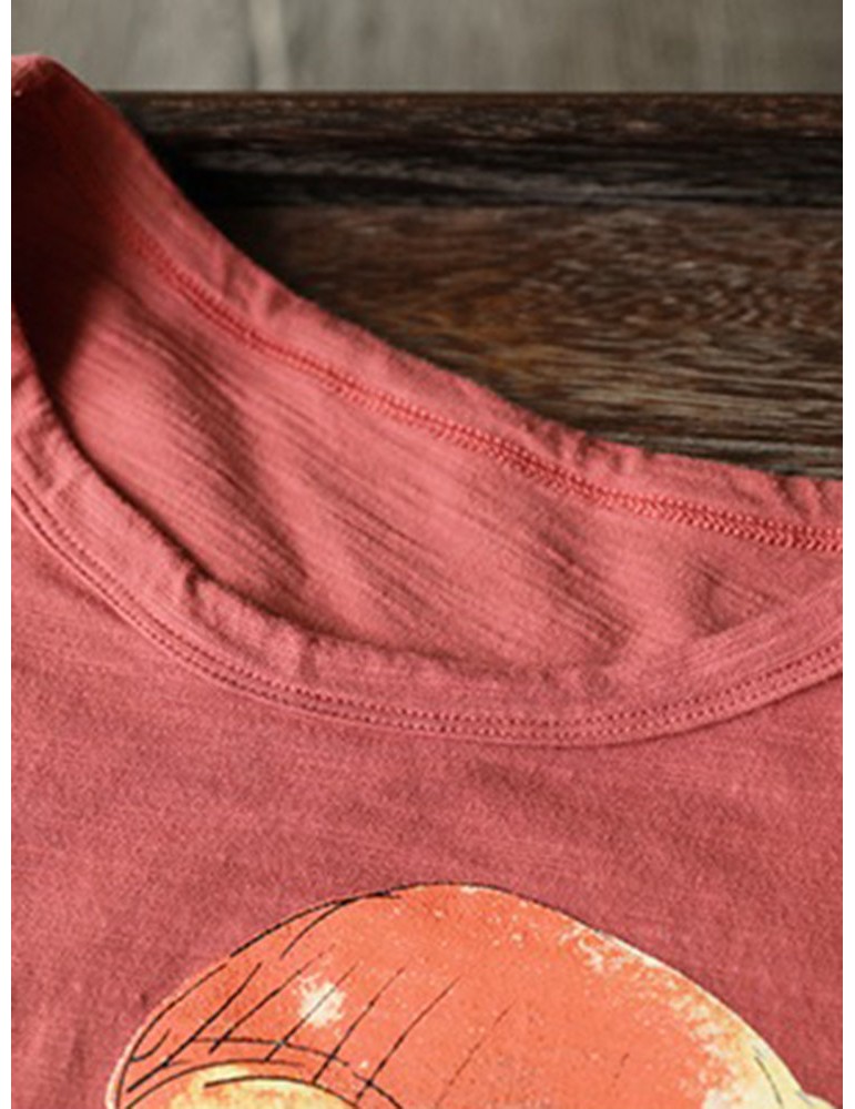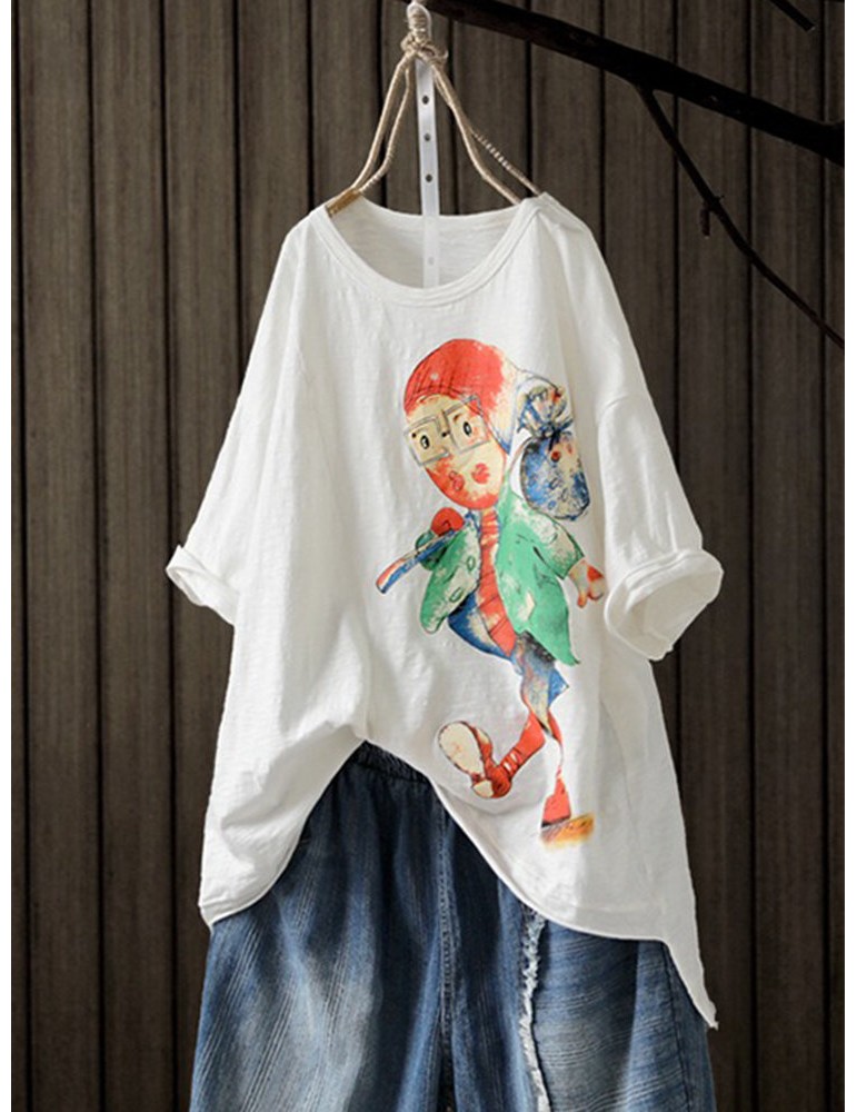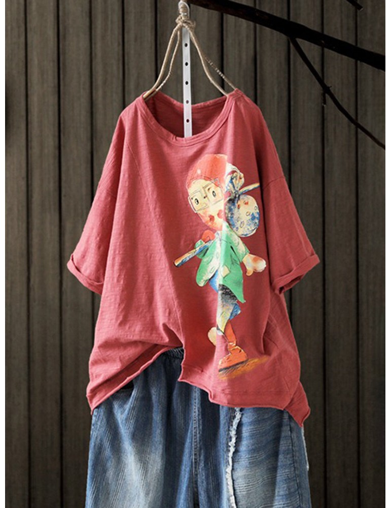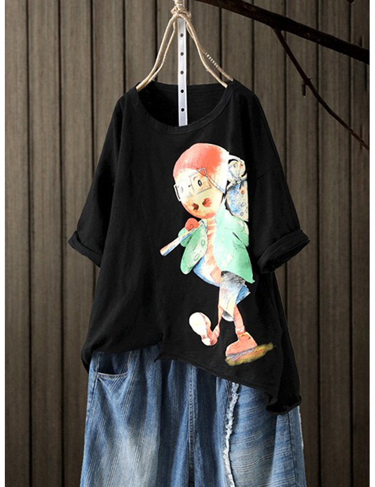 Cartoon Printed Asymmetrical Short Sleeve Pullover T-Shirt