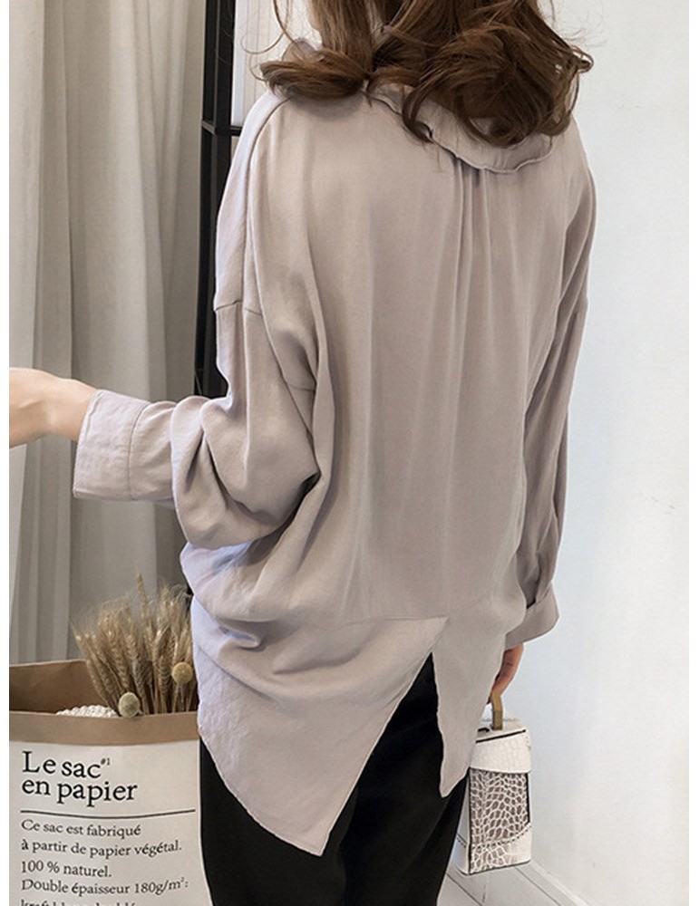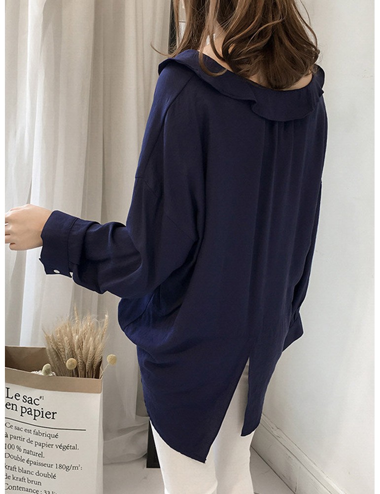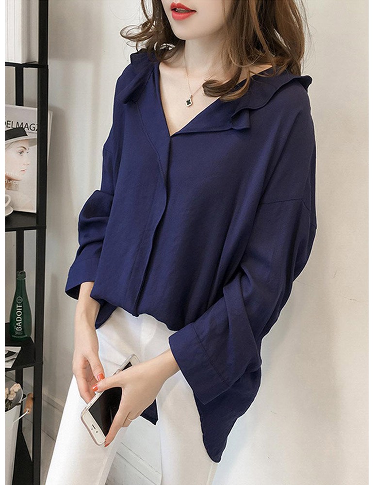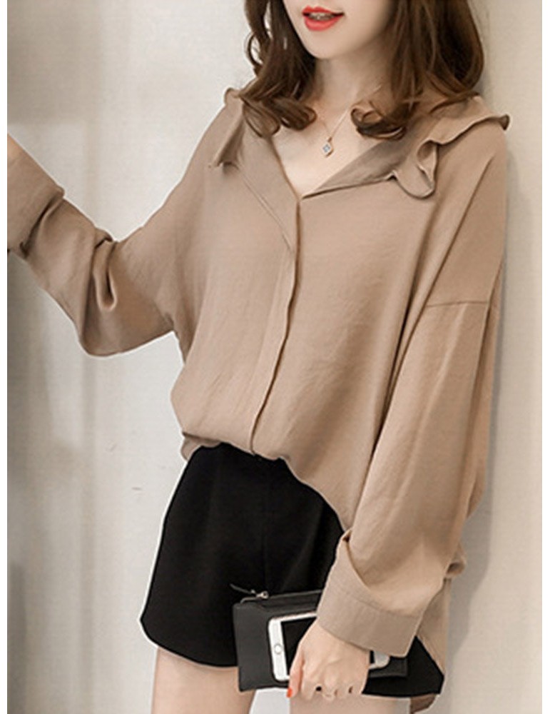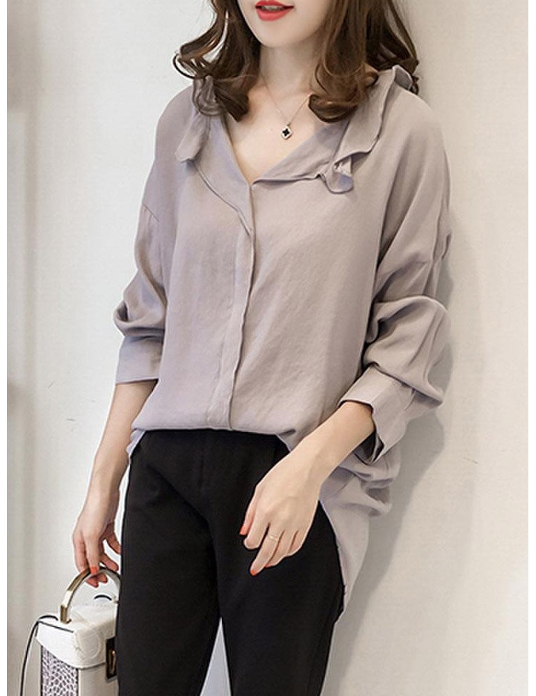 Casual Long Sleeve Solid Color Wave V-neck Shirt