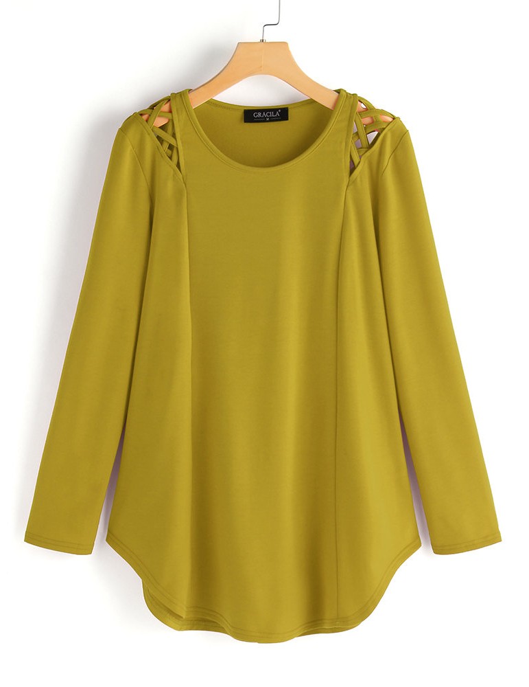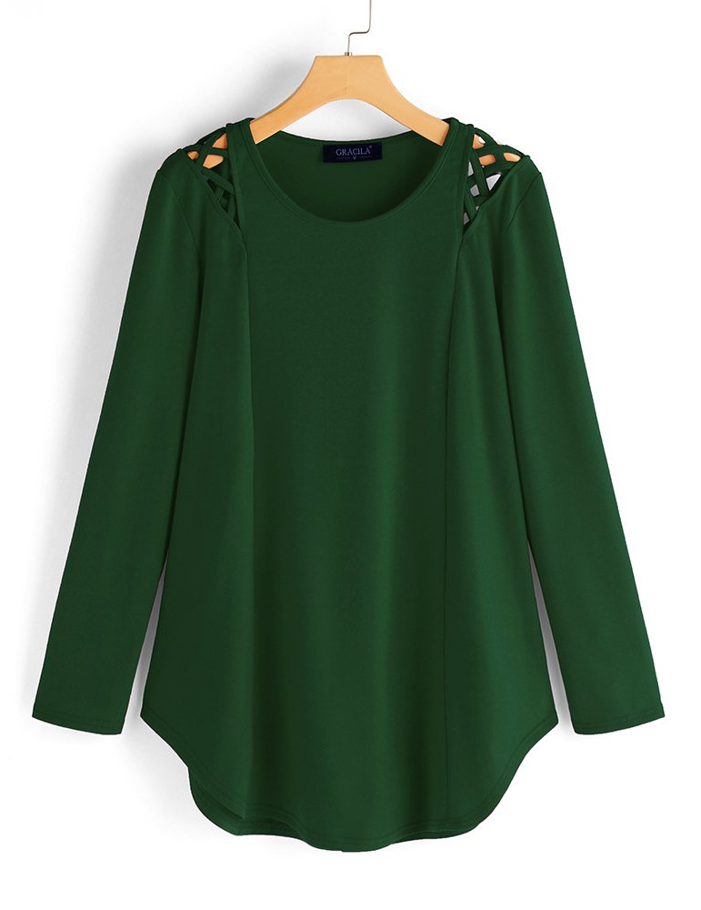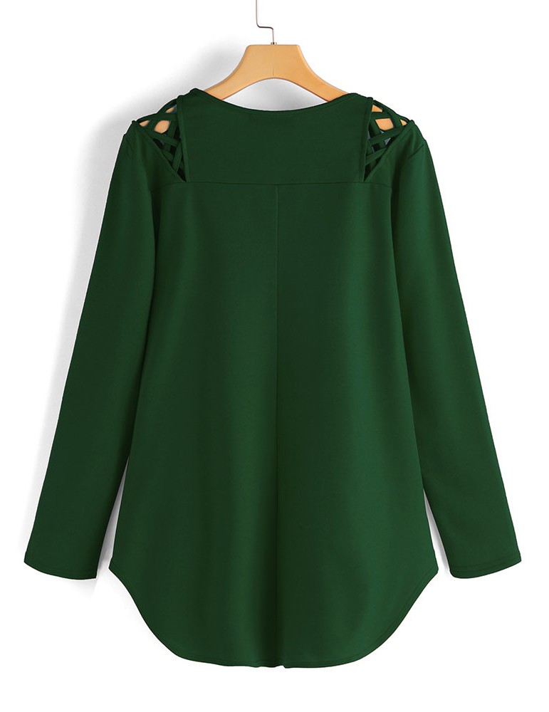 Asymmetrical Hem Cross Shoulder Long Sleeve Blouse