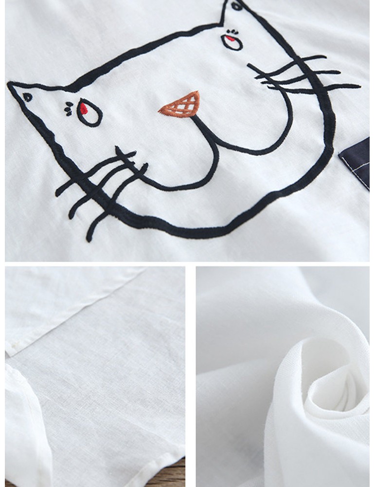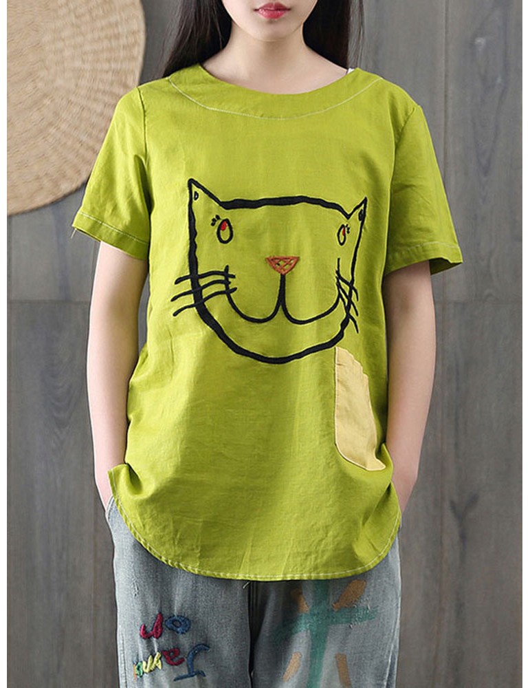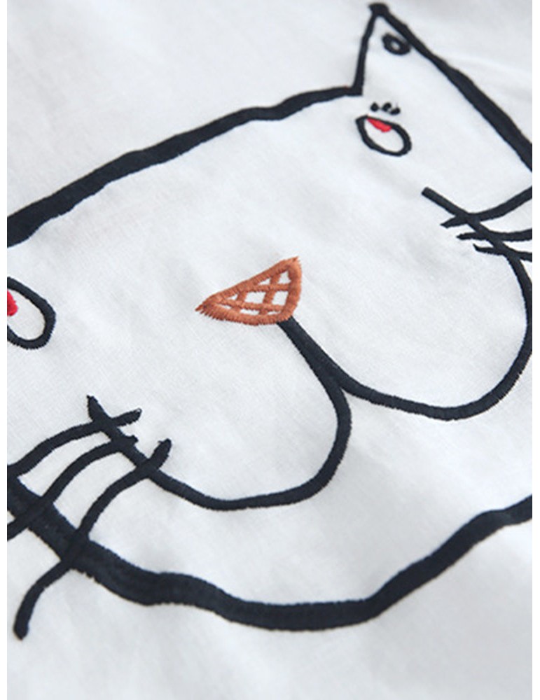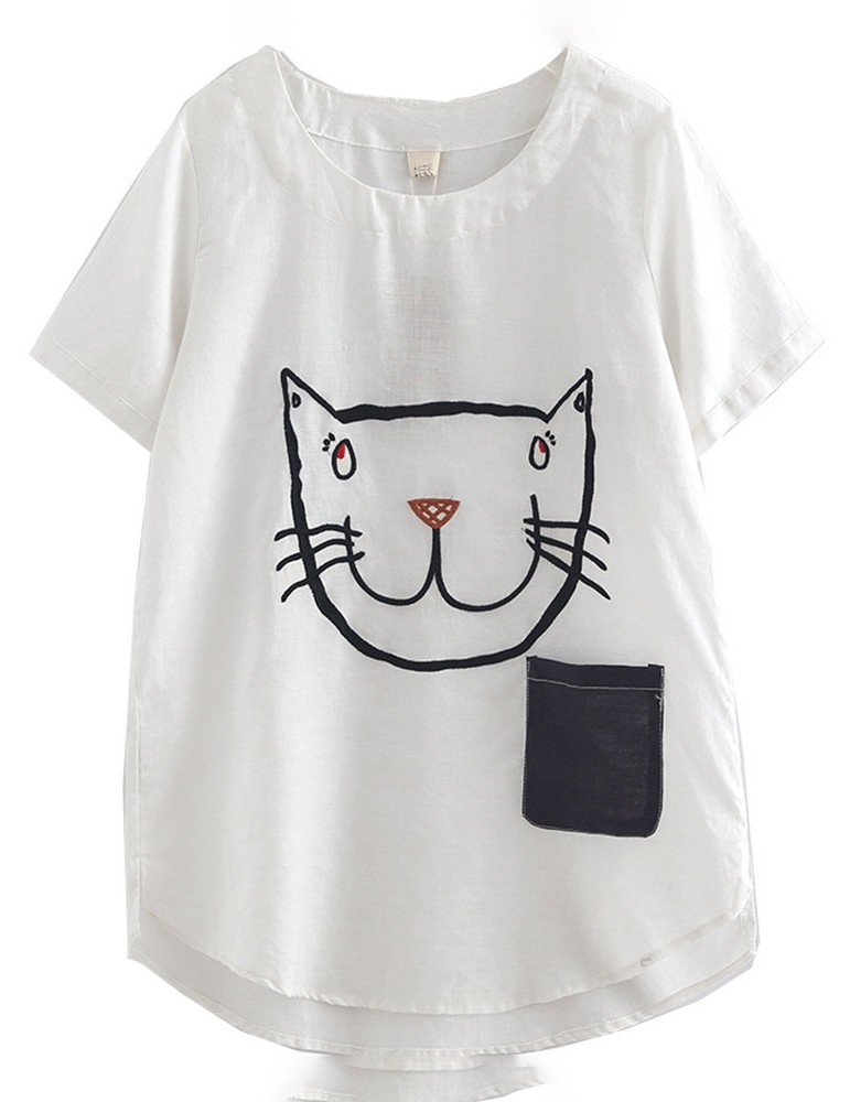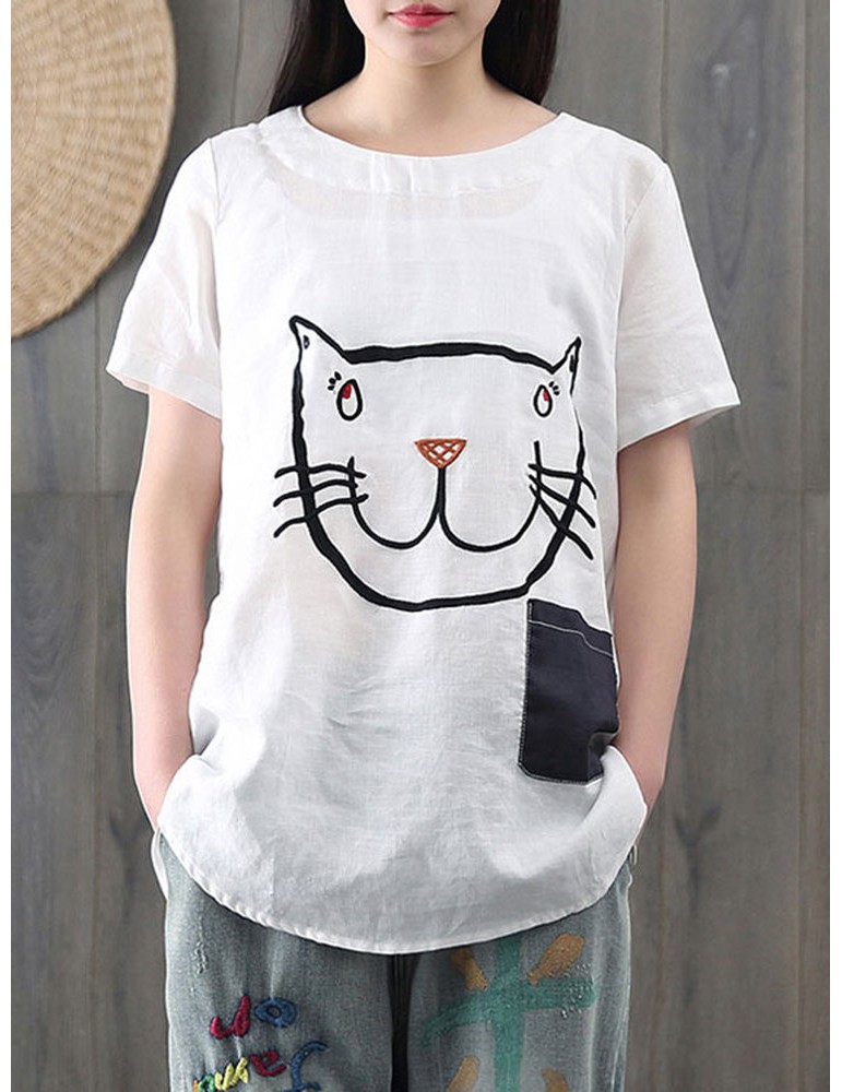Cartoon Cat Print Casual Short Sleeve Cute T-Shirt
