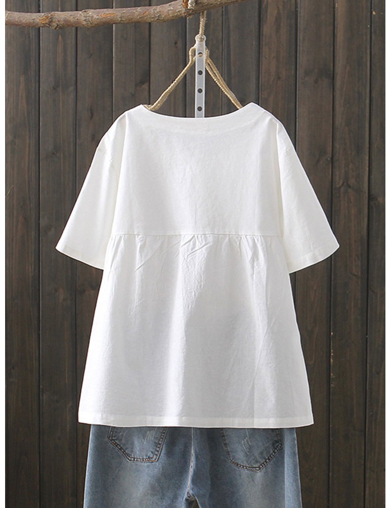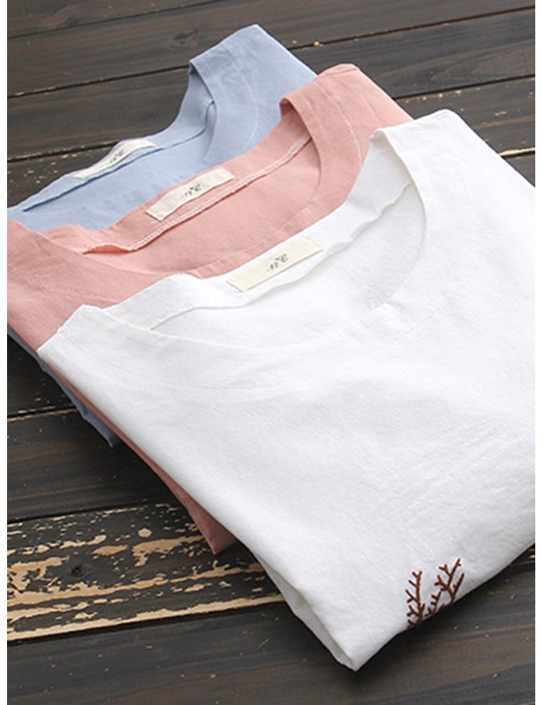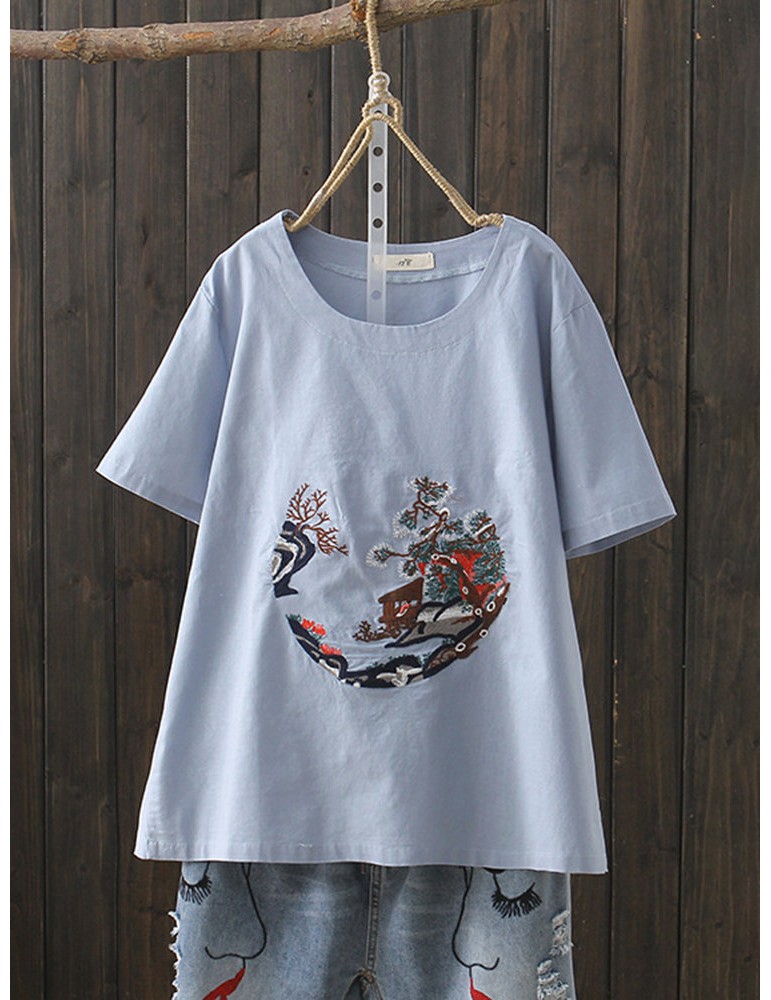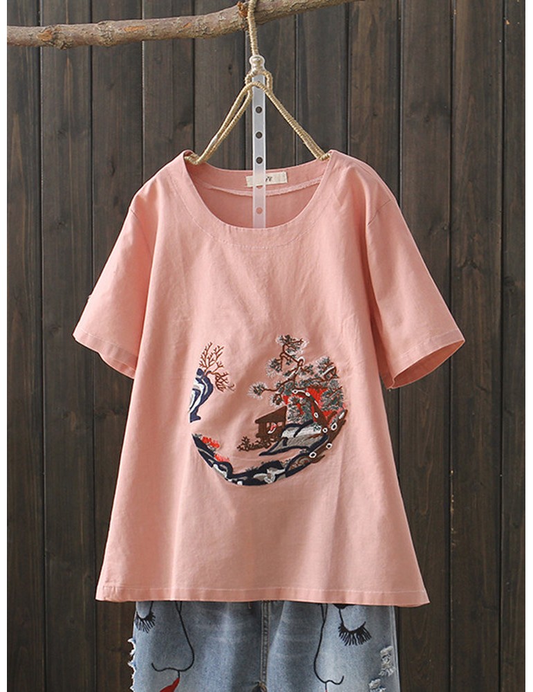 Casual Embroidery Short Sleeve Crew Neck T-Shirt