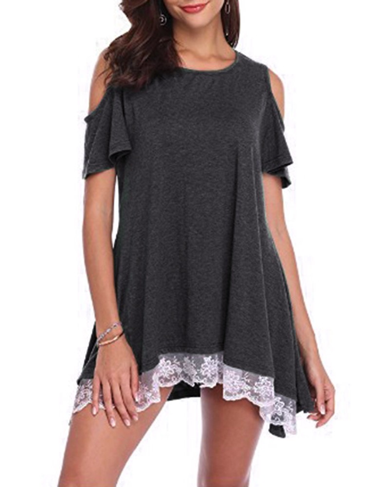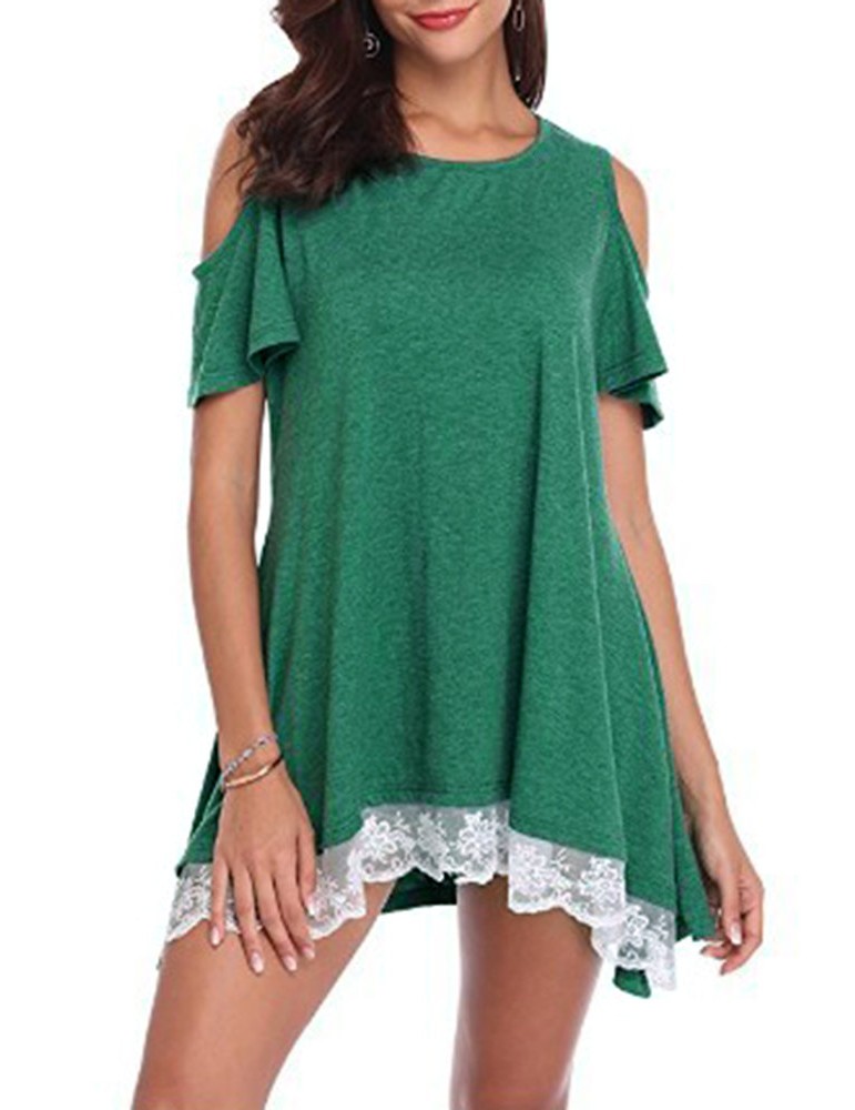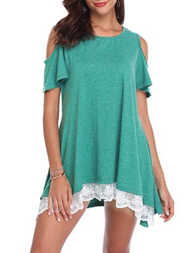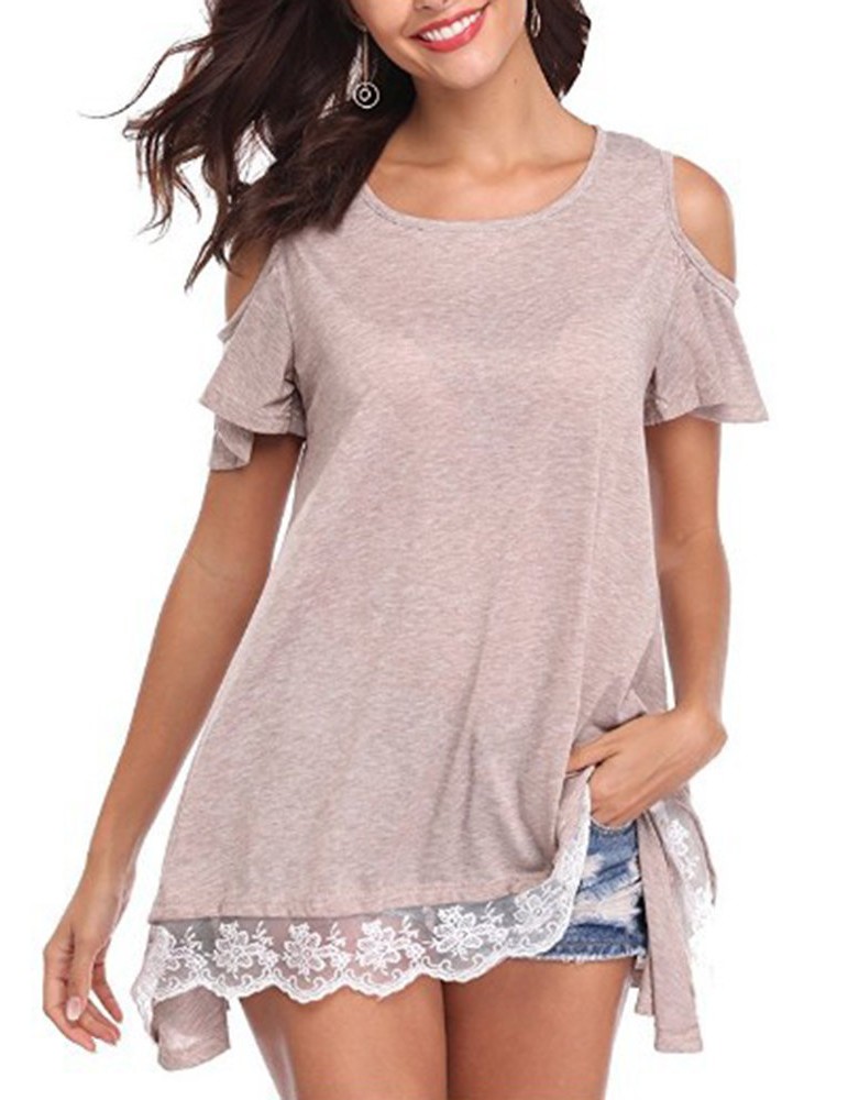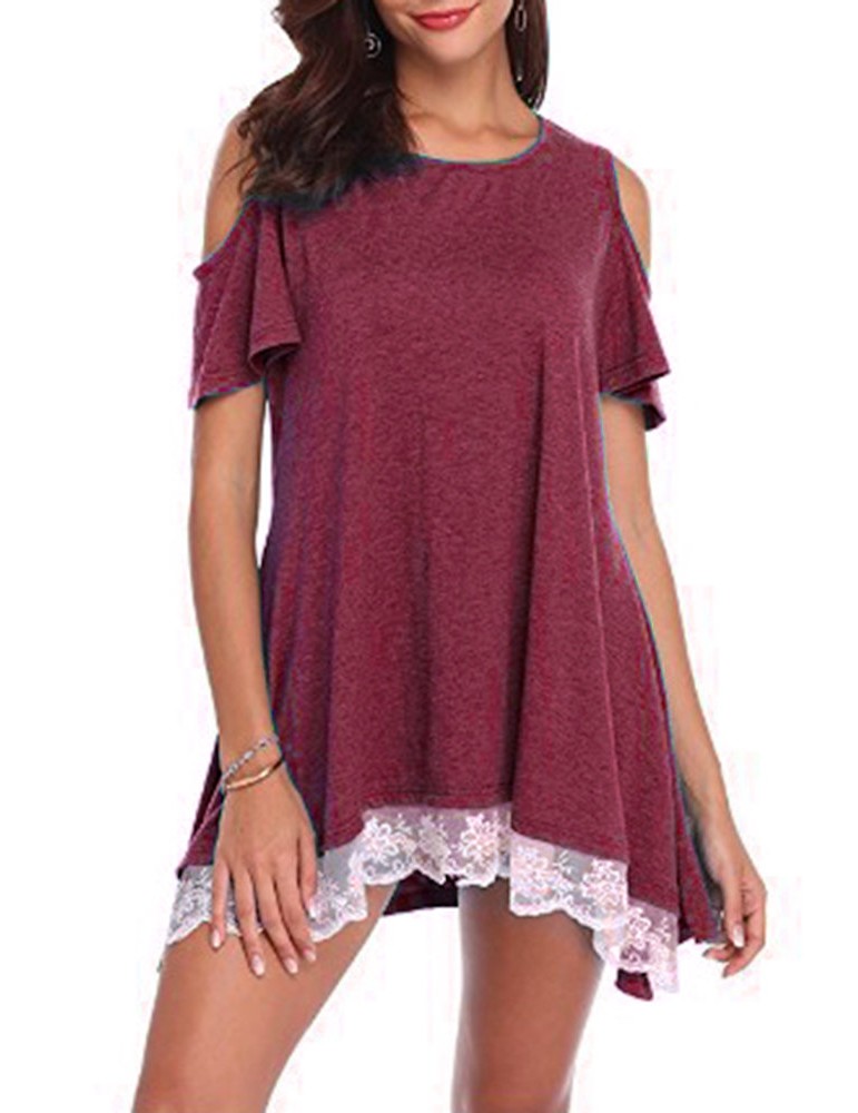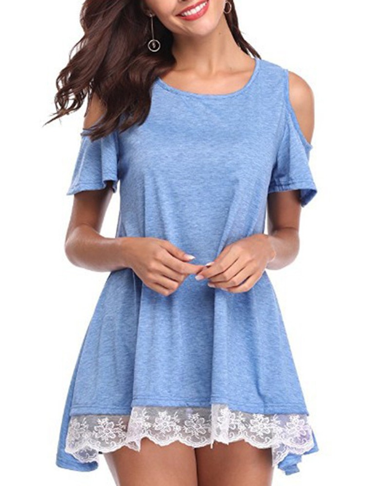 Lace Patchwork Hem Off Shoulder Short Sleeve T-shirts