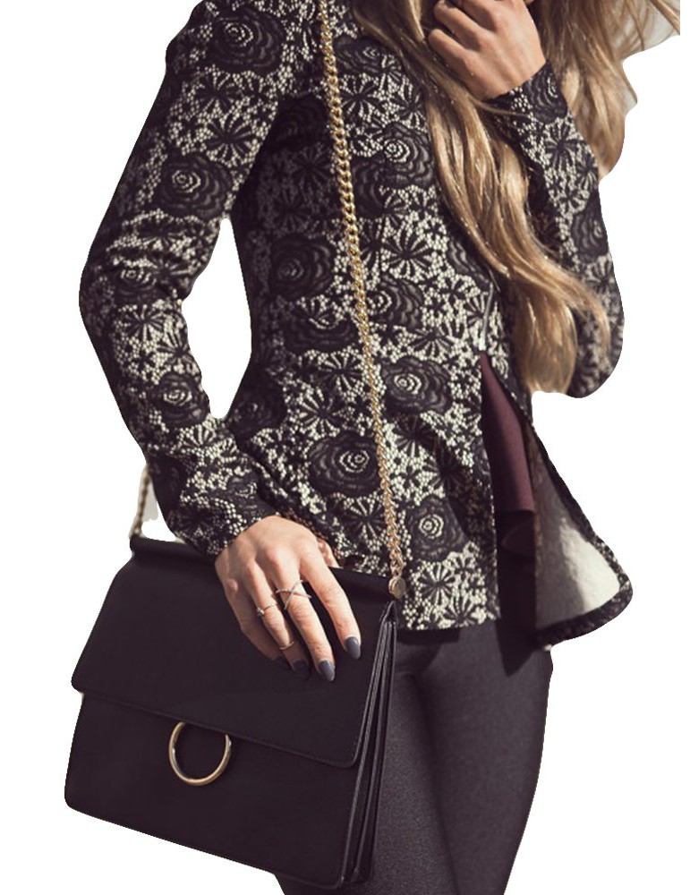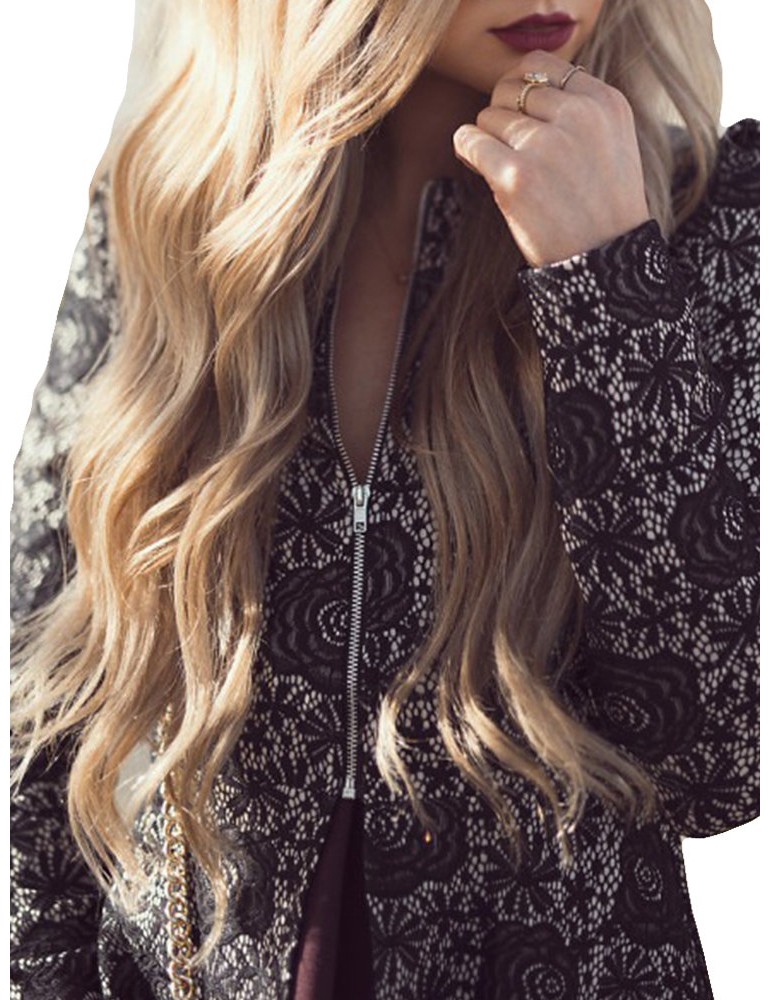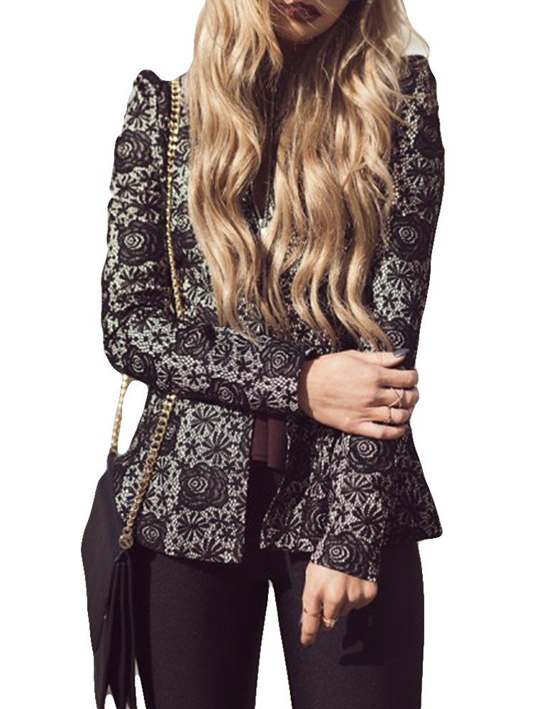 Black Floral Lace Long Sleeve Vintage Jacket For Women