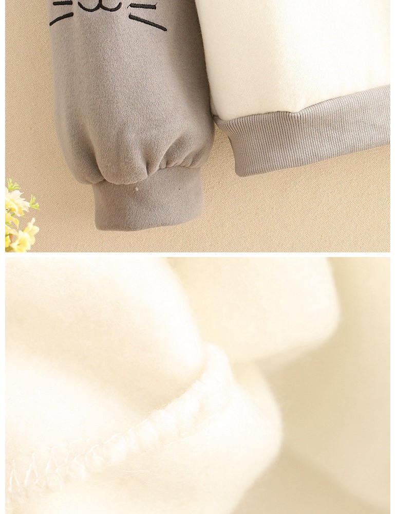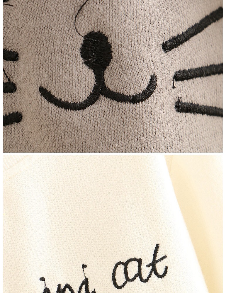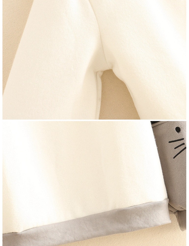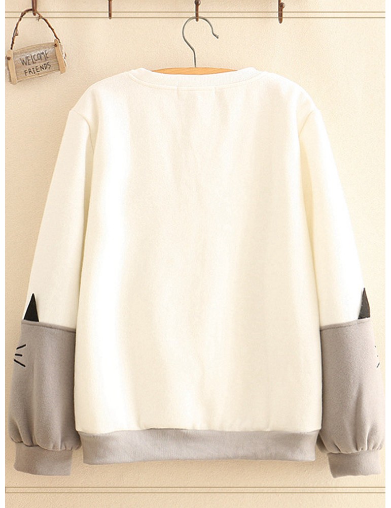 Women Cute Cat Print Patchwork Cotton Loose Crew Neck Sweatshirt