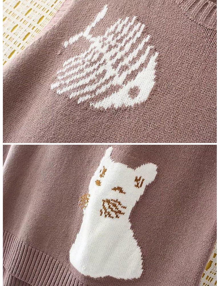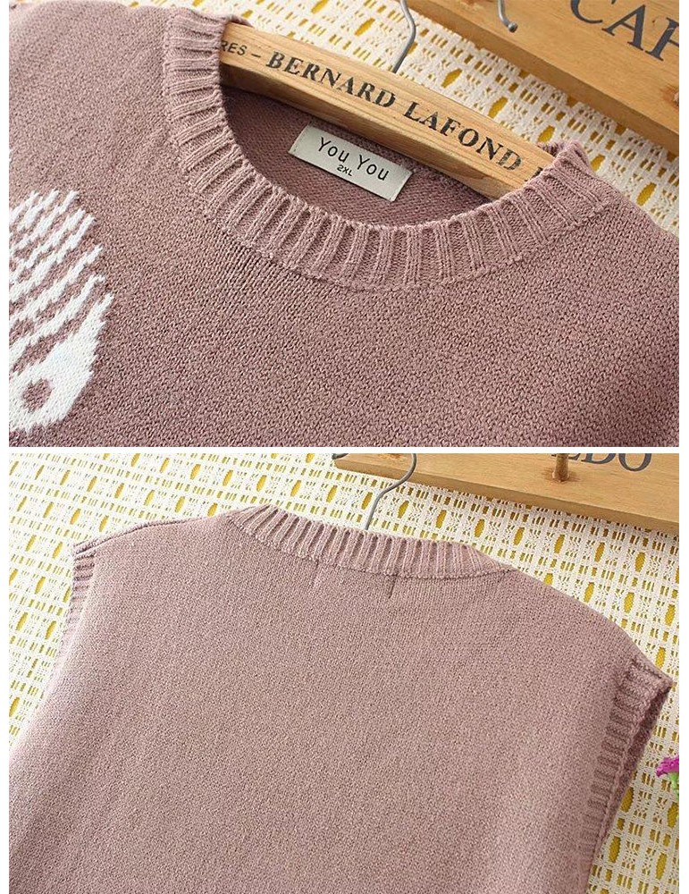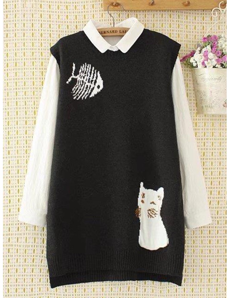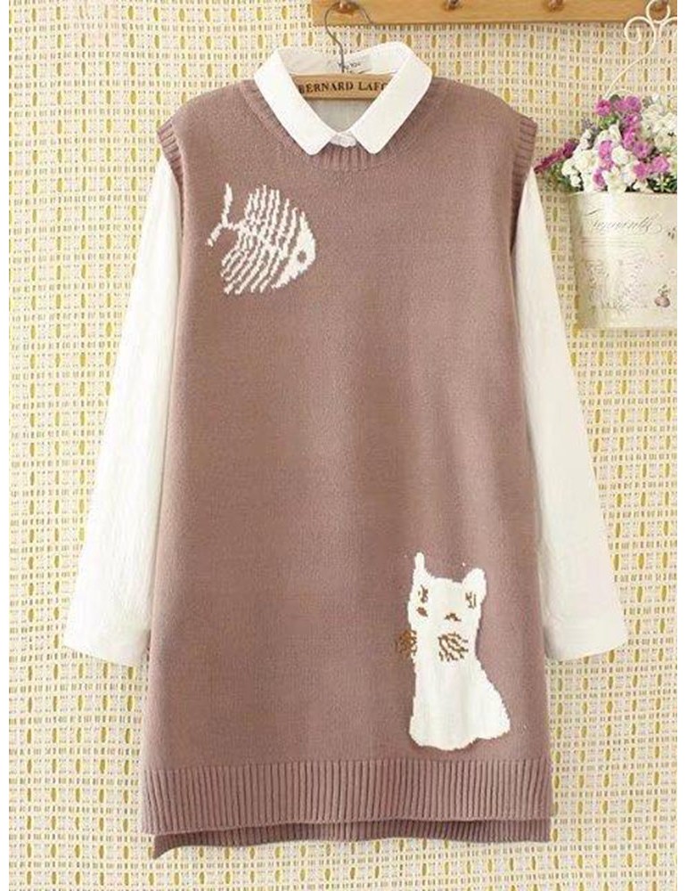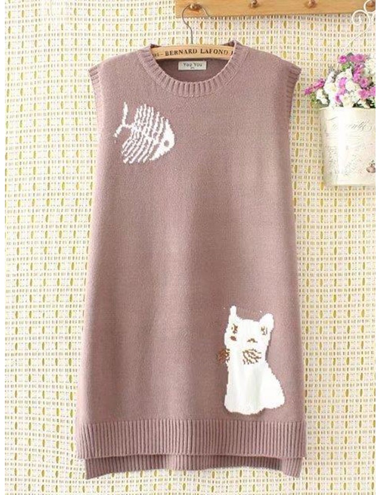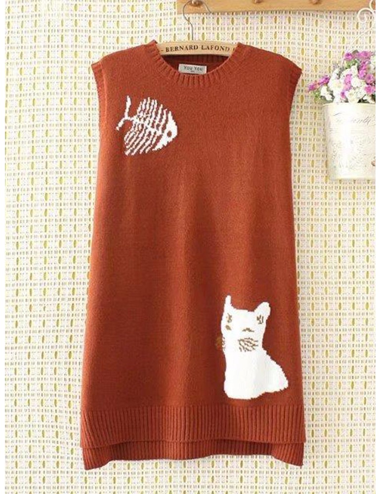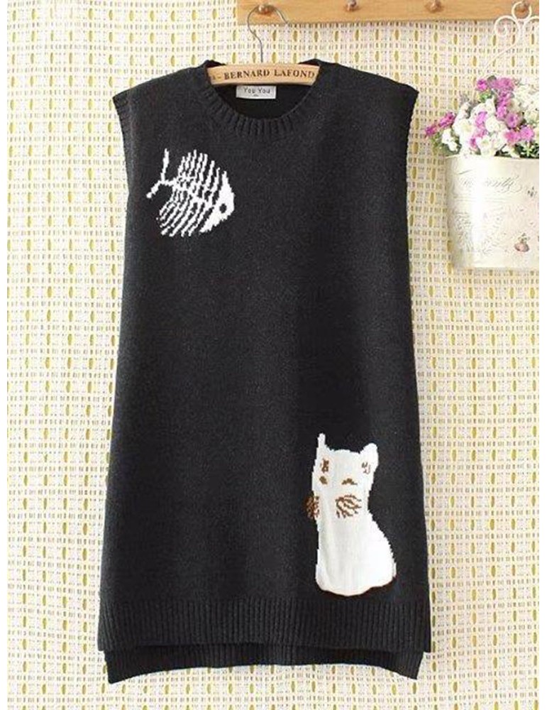 Casual Knit Cat Fish Crew Neck Vest Sweater