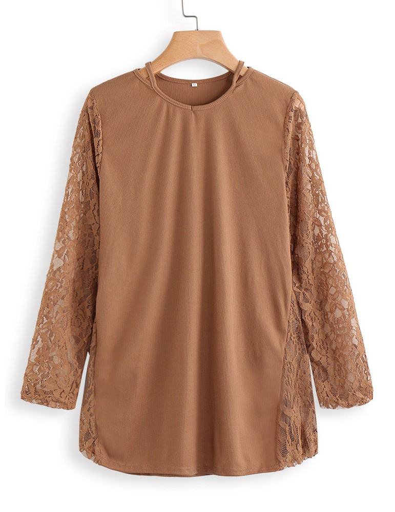 Casual Lace Patchwork Knit Crew Neck Sweater