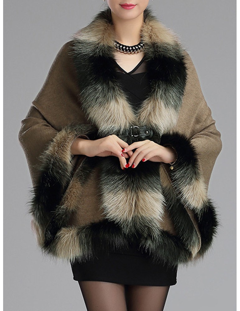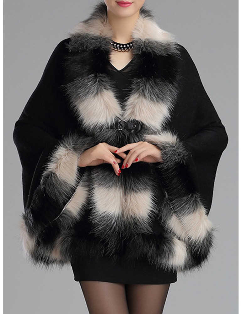 Casual Warn Bats Sleeve Women Faux Fur Coats