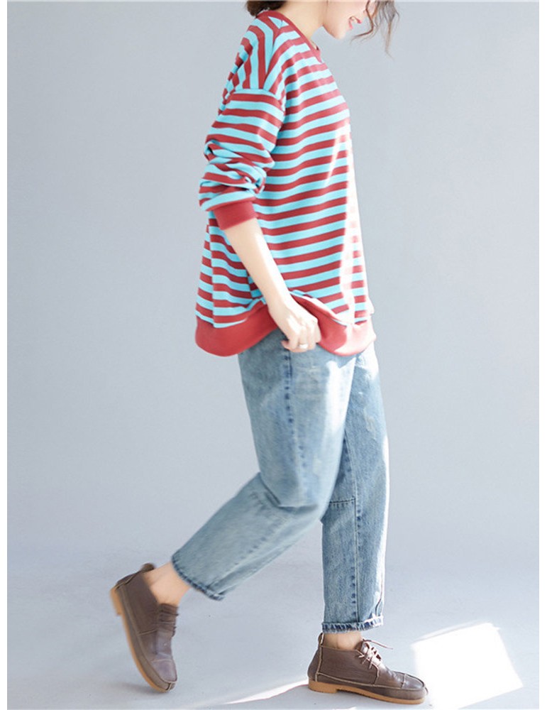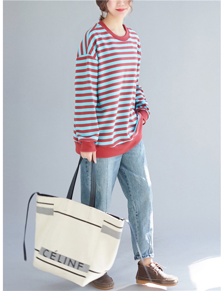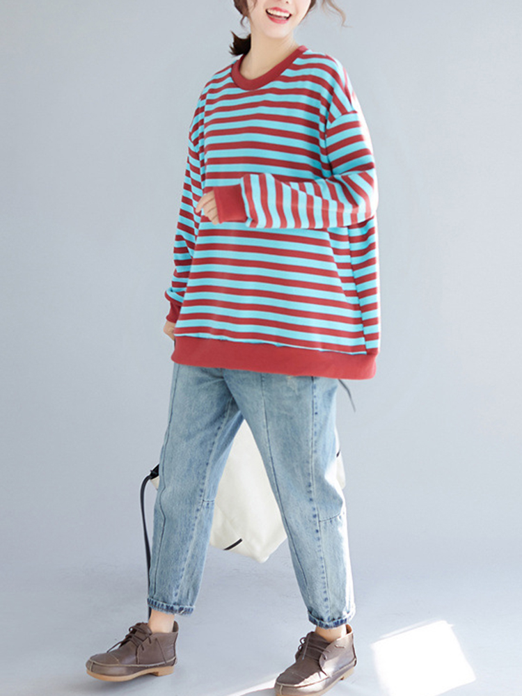 Casual Striped O-neck Long Sleeve Sweatshirt